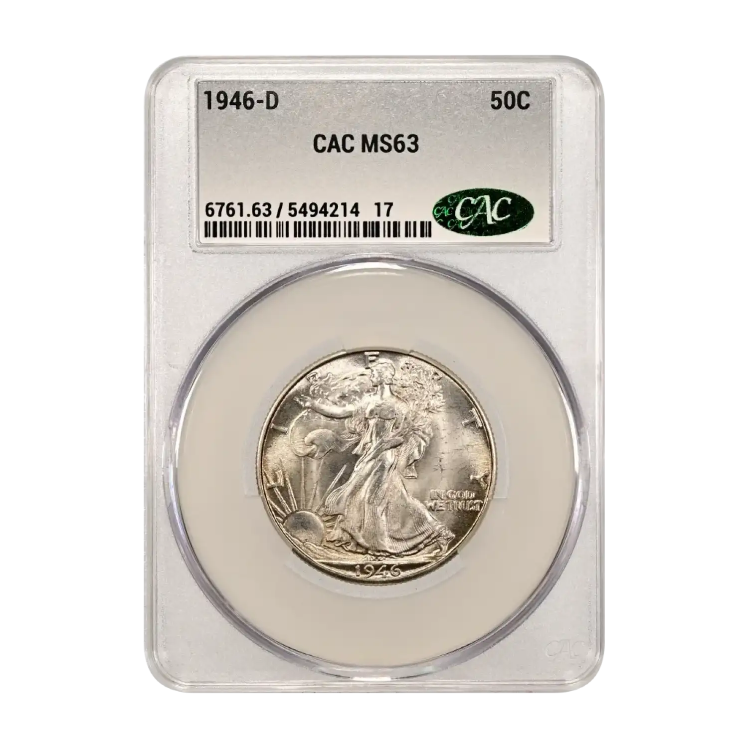 1946 D Walking Liberty Half Dollar CAC Grading (CACG) MS 63