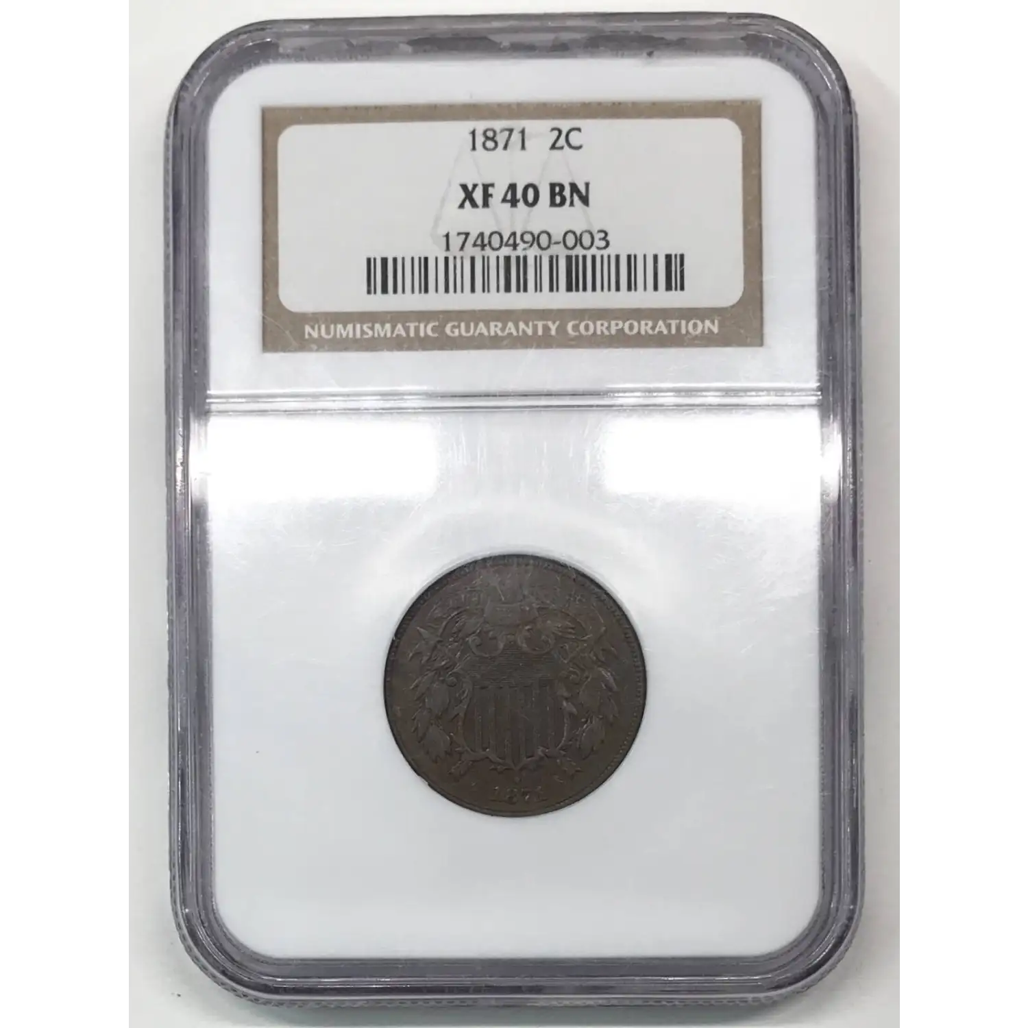 1871 P Two-Cent Piece (2c) NGC XF-40 BN