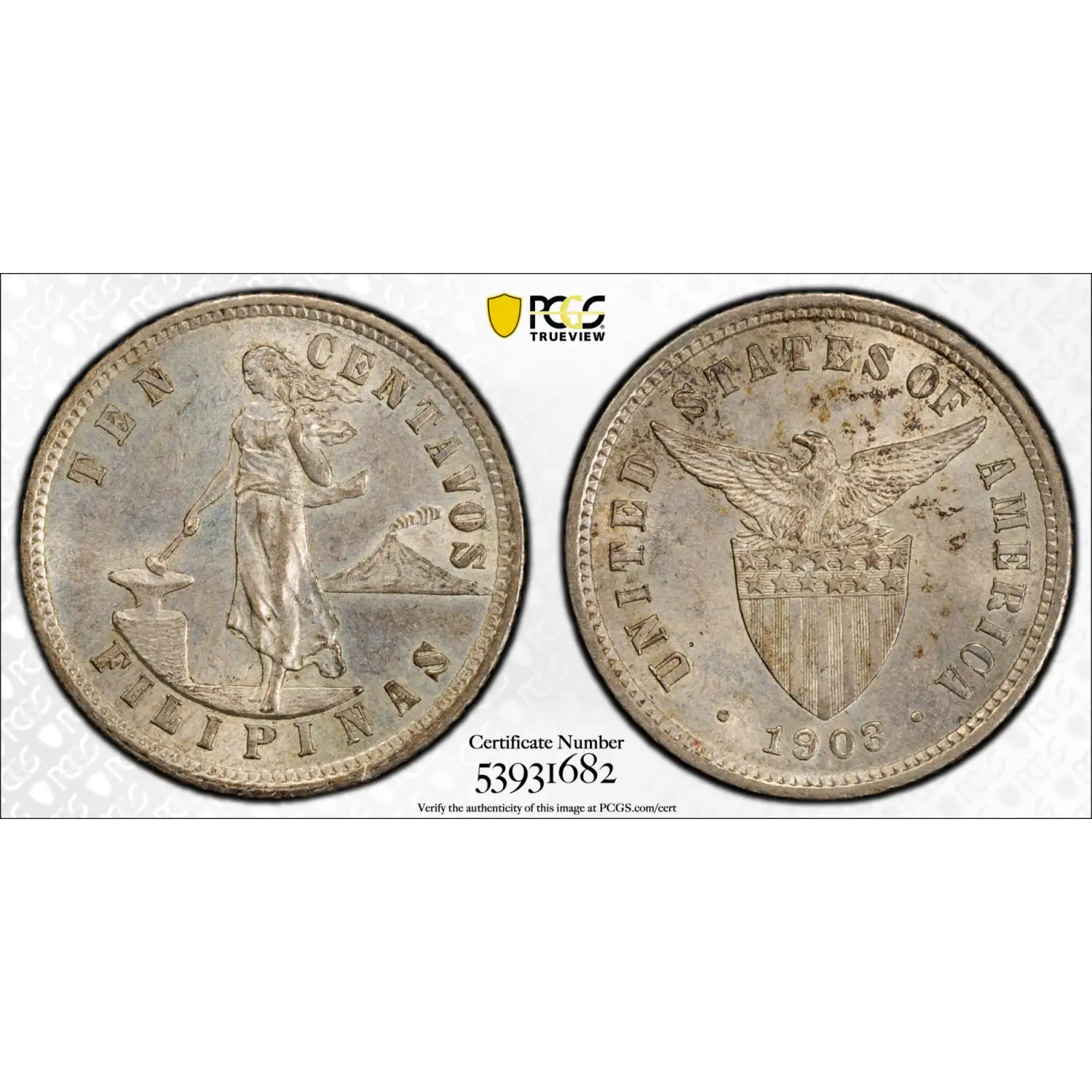 1903 US Philippines Silver 10 Centavos PCGS MS-63