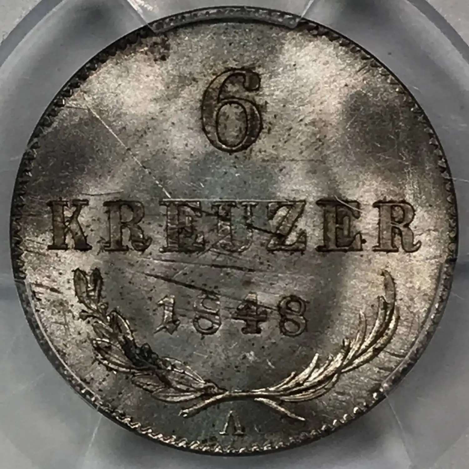 1848-A Austria Silver 6 KREUZER PCGS MS-63