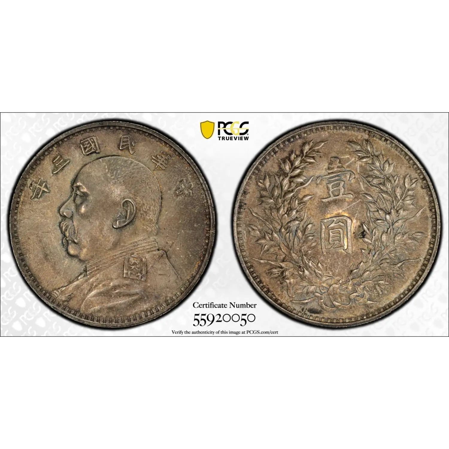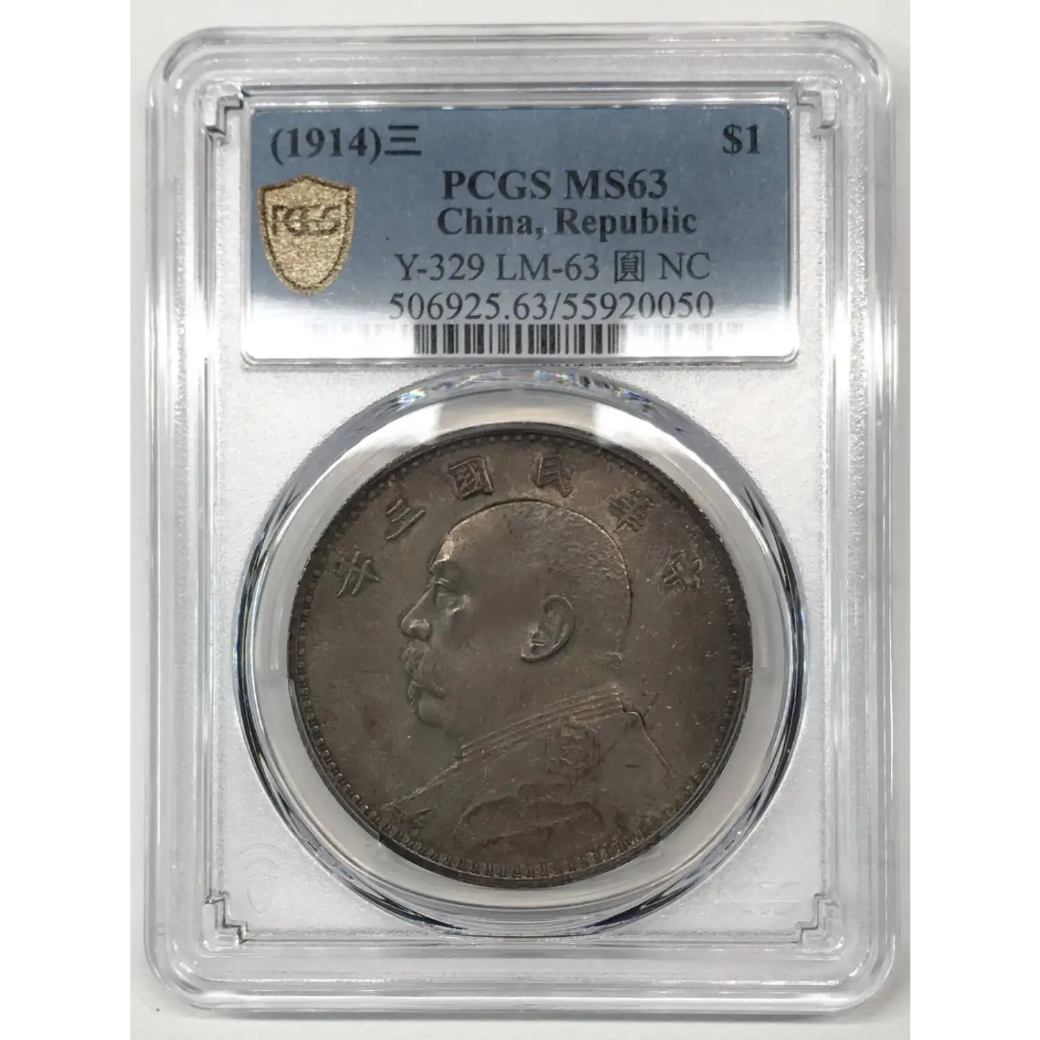 1914 China, Republic "Fat Man" Silver Dollar/Yuan PCGS MS-63 Y-329 LM-63 Y-329 LM-63 Original 圎 NC