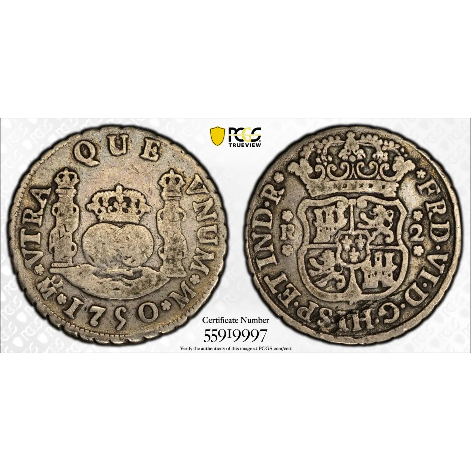 1750-Mo M MEXICO Silver 2 REALES PCGS F-15 Calico-289