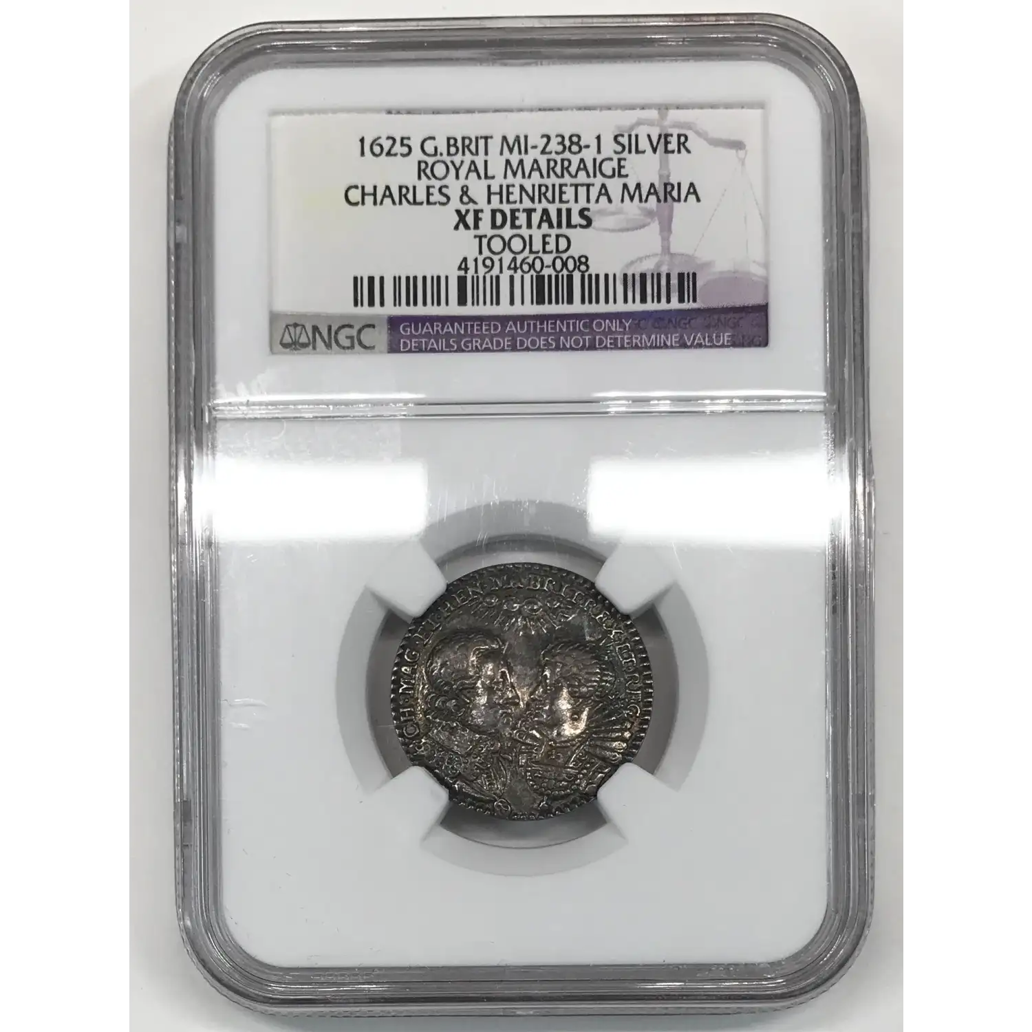 1625 Great Britain ROYAL MARRAIGE CHARLES & HENRIETTA MARIA Silver Medal/Medalet NGC XF Details (tooled) - MI-238-1, Eimer-105A - nice tone
