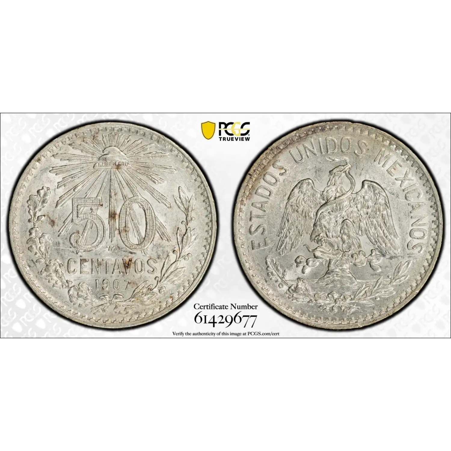 1907-M MEXICO Silver 50 CENTAVOS PCGS MS-61 Straight 7