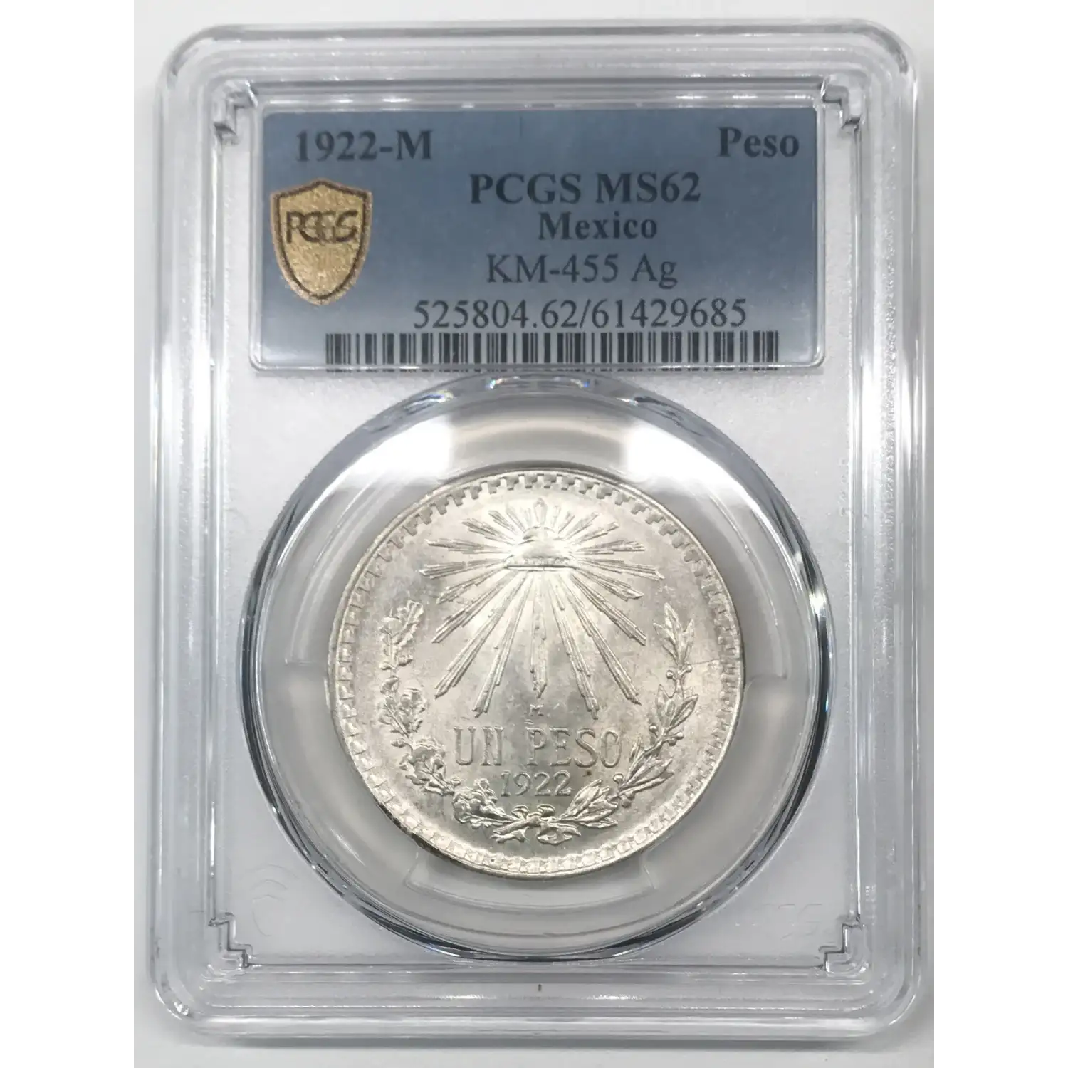 1922-M MEXICO Silver PESO PCGS MS-62 KM-455