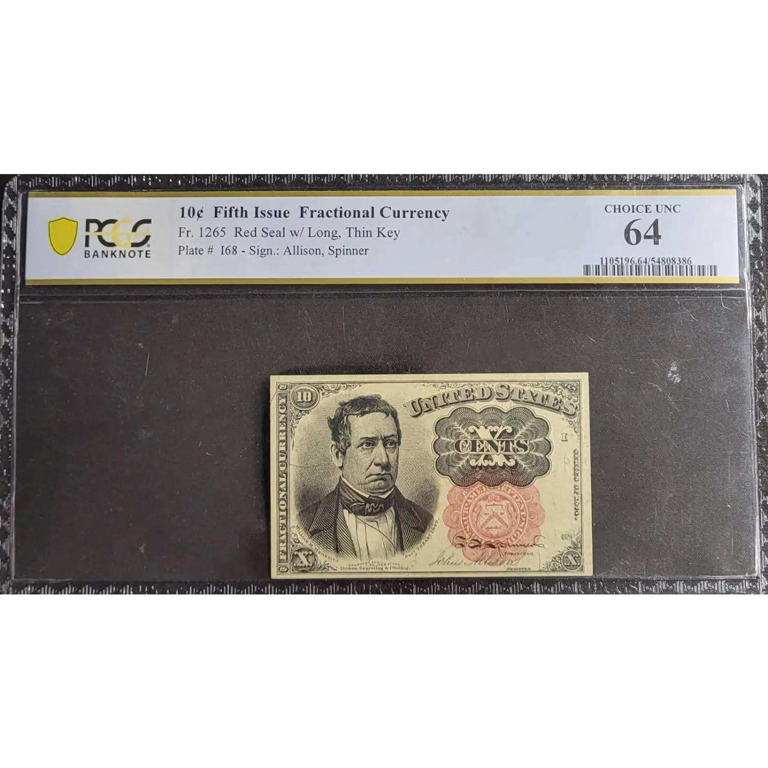 Fifth Issue 10c Fractional Currency Red Seal Fr. 1265 PCGS Choice Unc 64