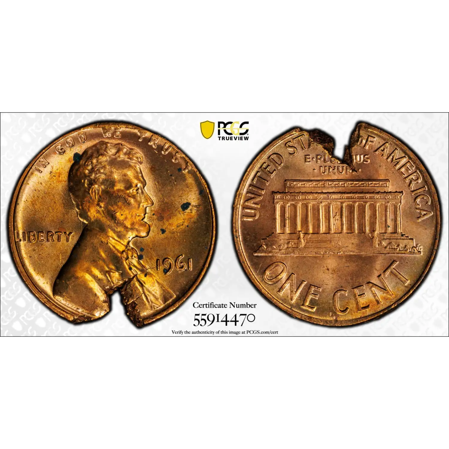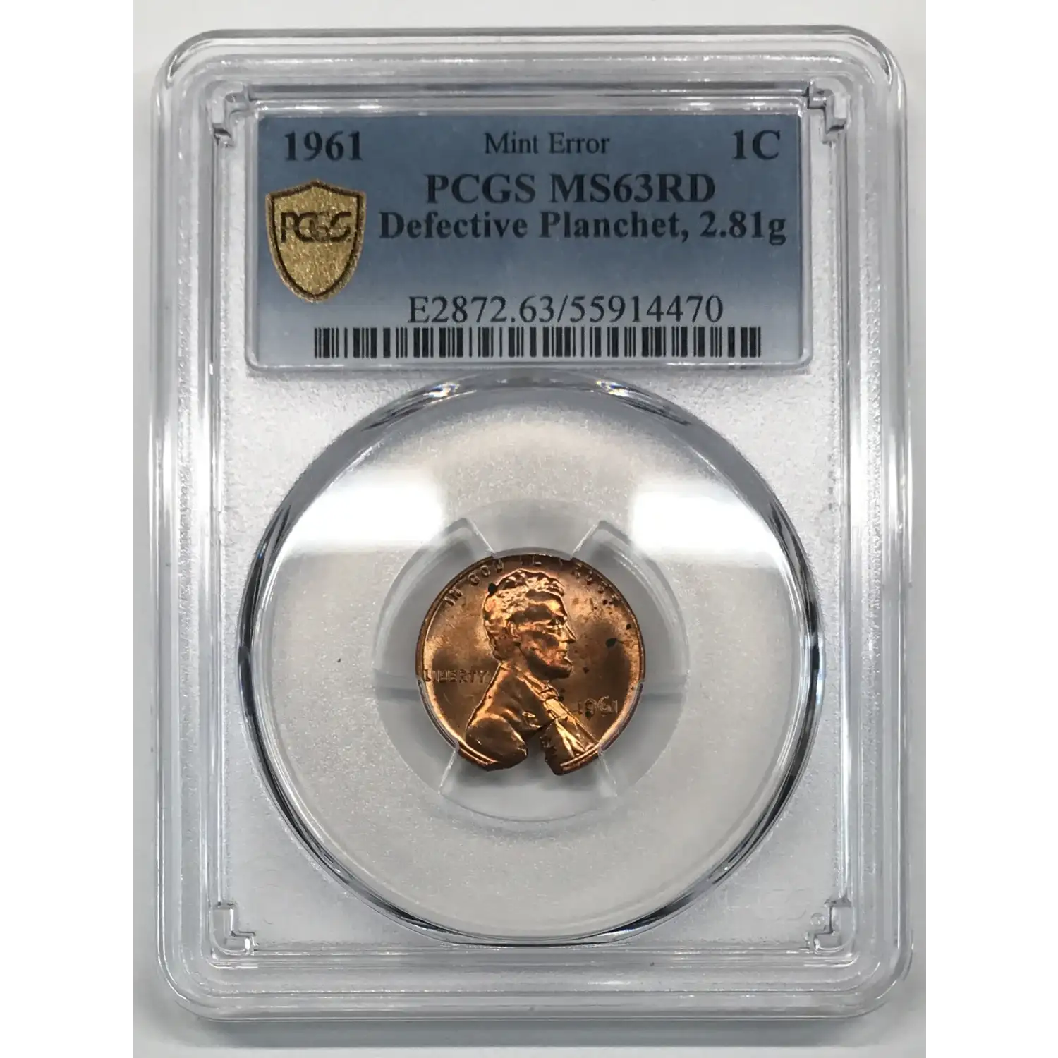 1961 P Lincoln Memorial Cent PCGS MS-63 RD - Defective Planchet (2.81 g) Mint Error
