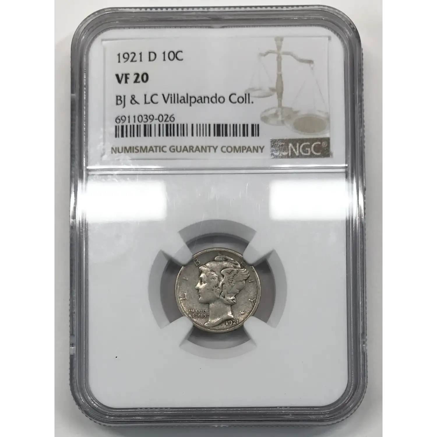 1921 D Mercury Dime NGC VF-20 - BJ & LC Villalpando Collection