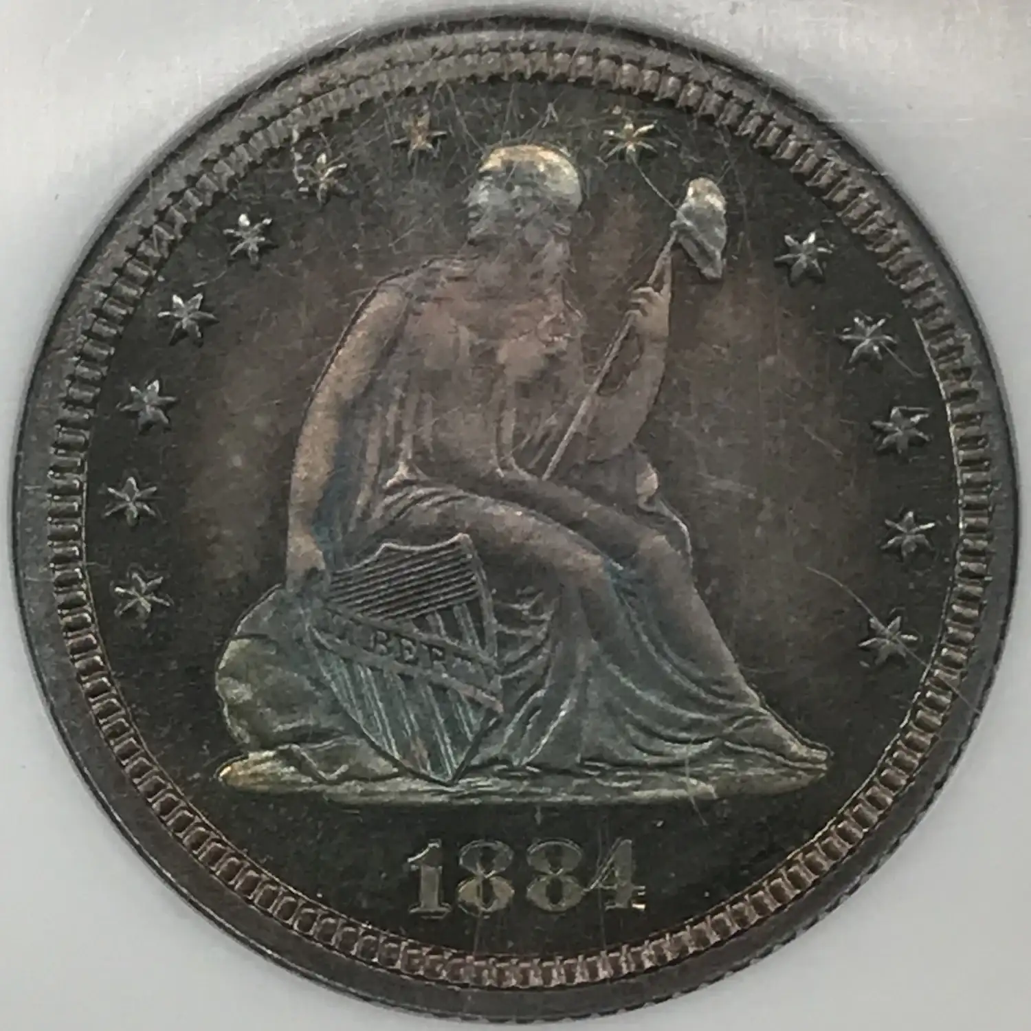 1884 Proof Seated Liberty Quarter NGC PF-66 CAC Rainbow Toning