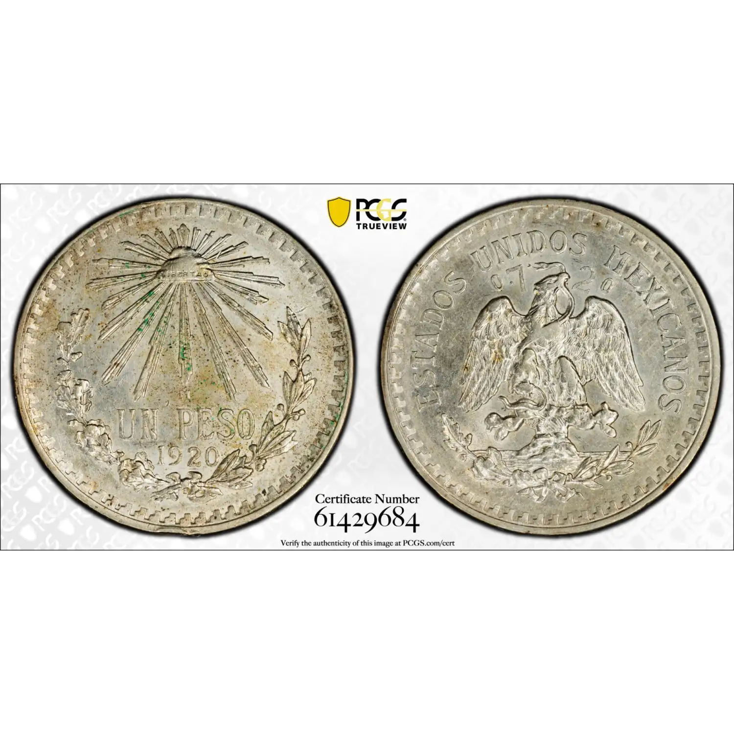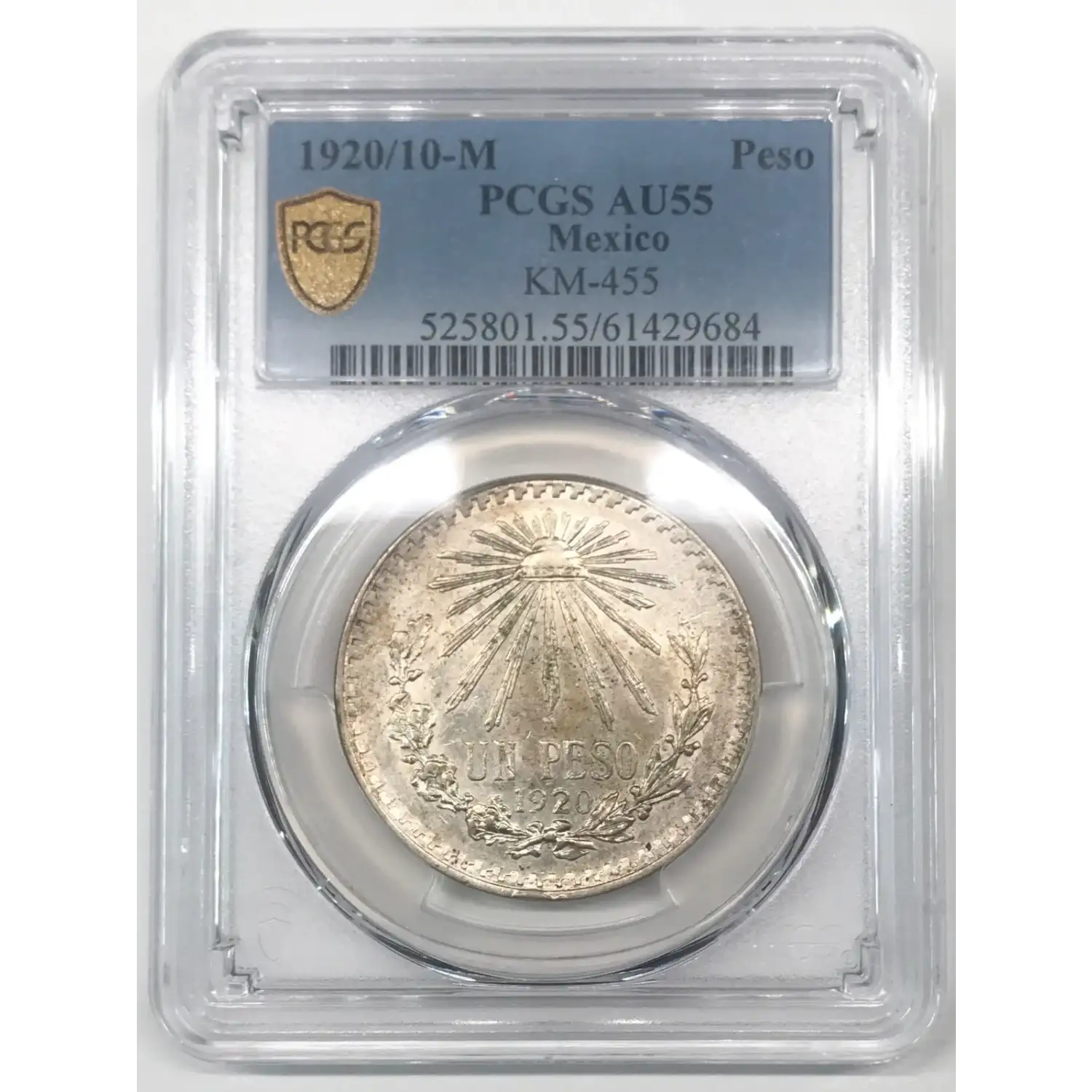 1920/10-M MEXICO Silver PESO PCGS AU-55 KM-455