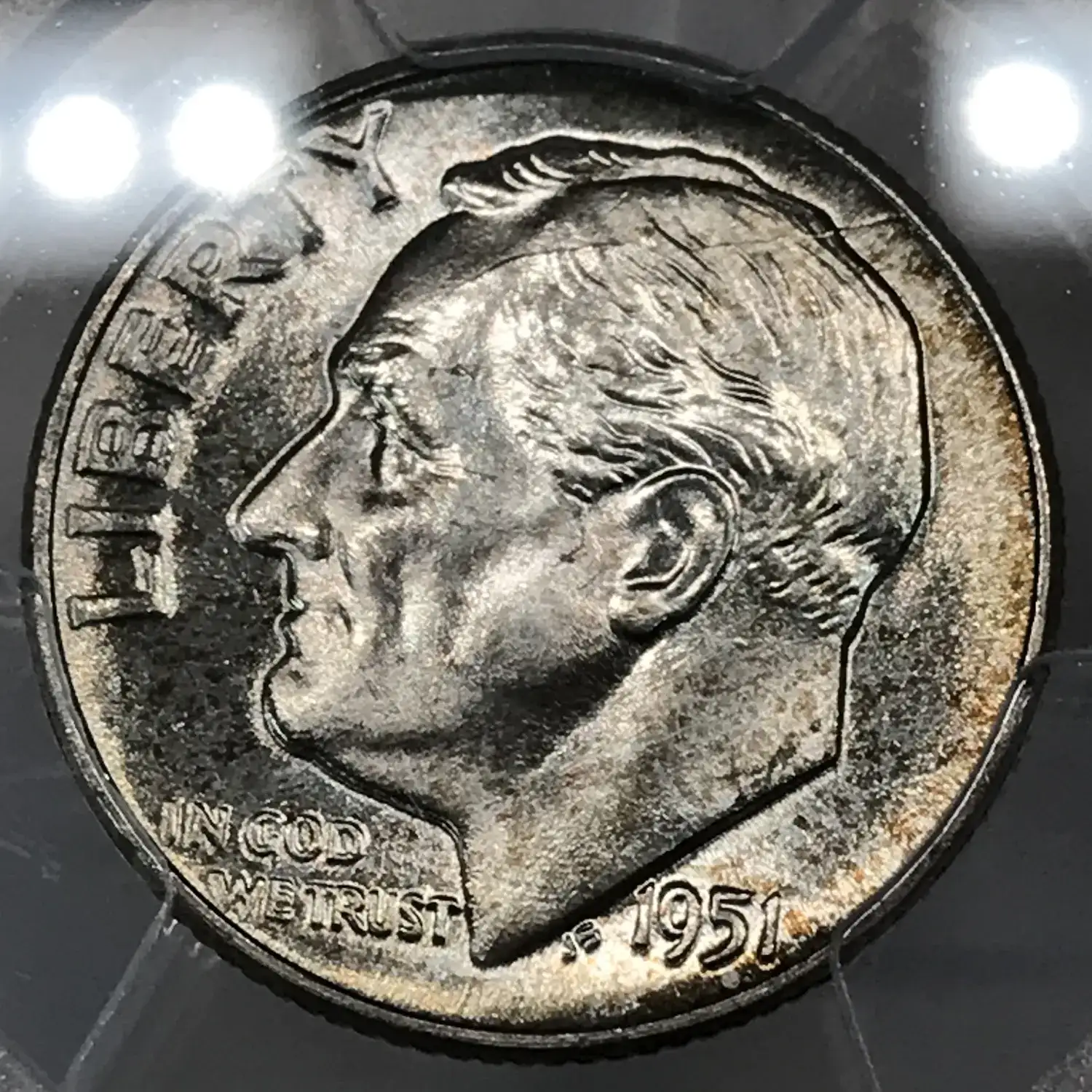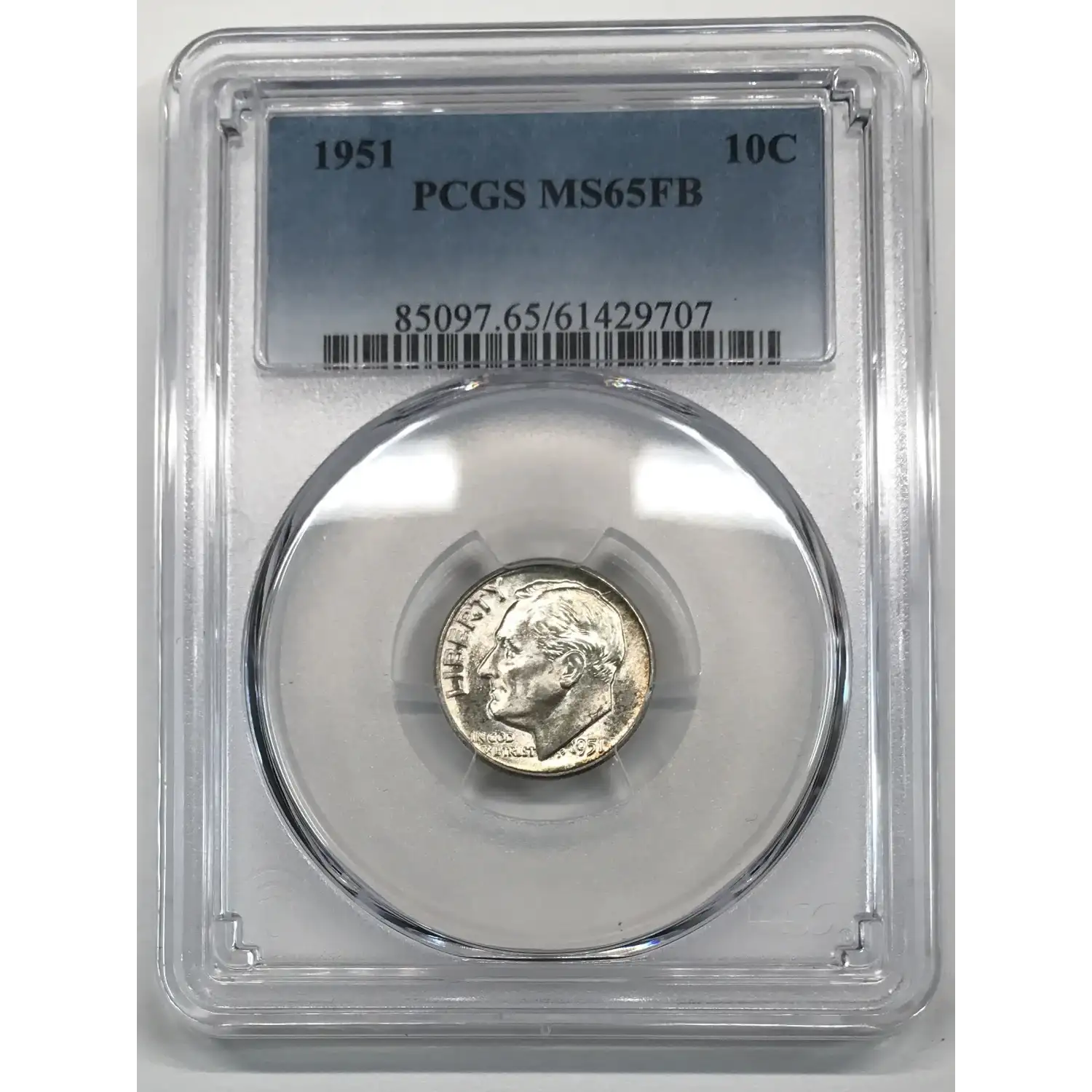 1951 P Roosevelt Dime PCGS MS-65 FB - die crack over forehead/head/hair