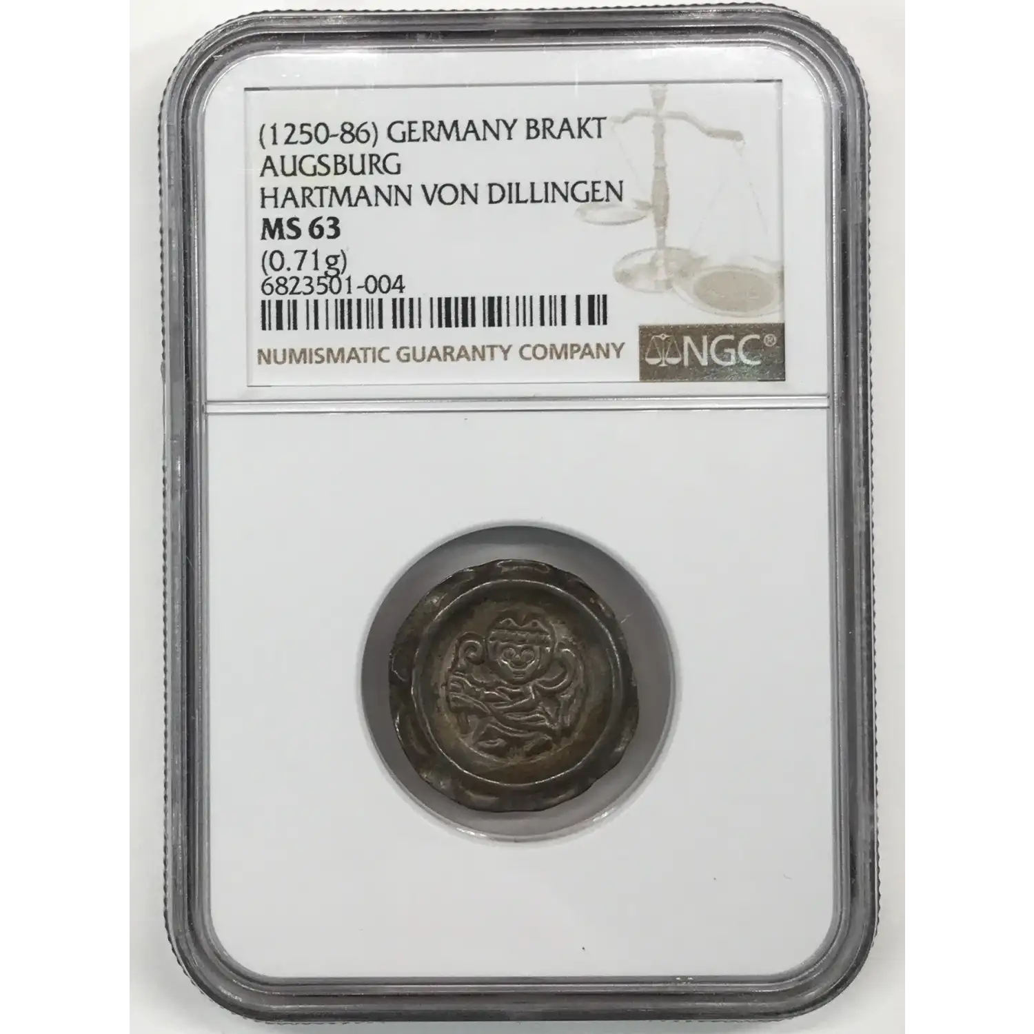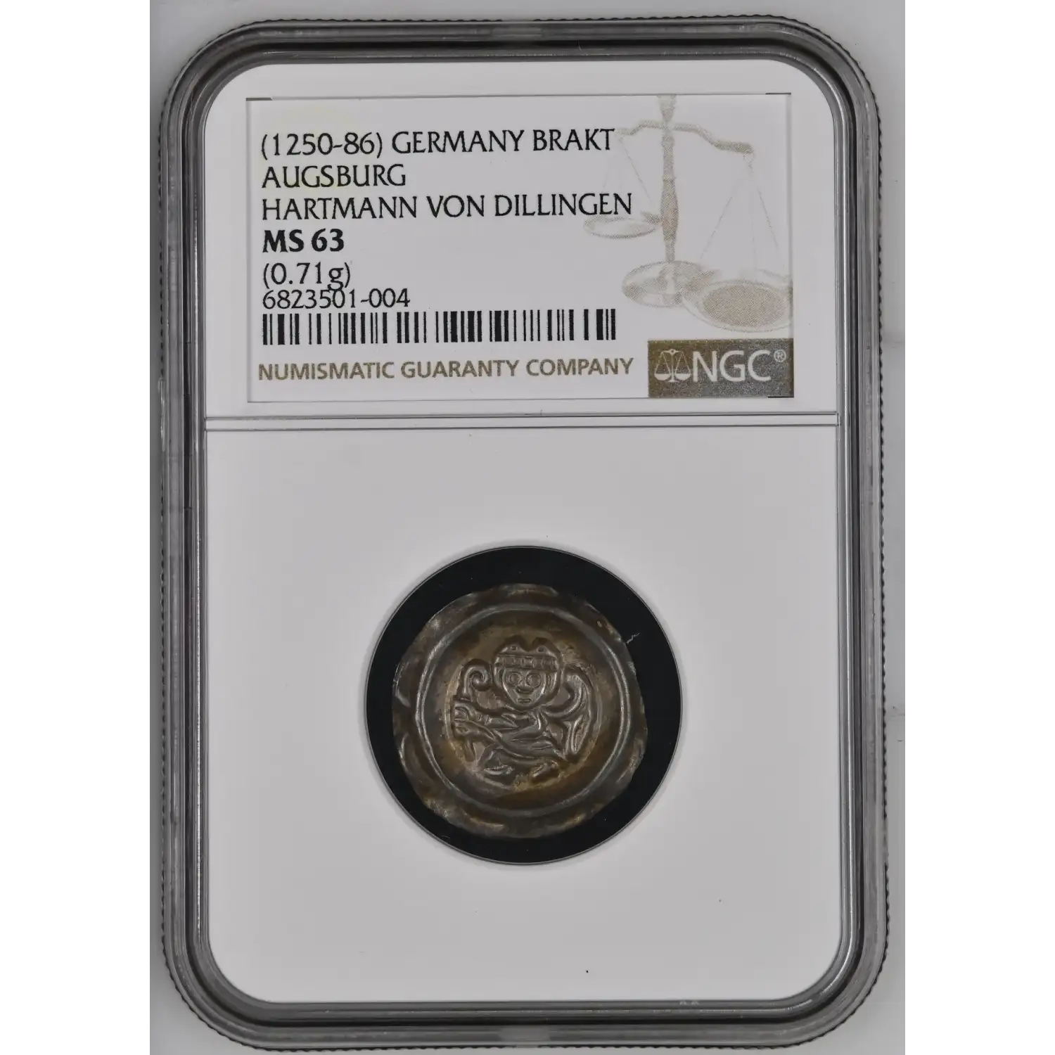 1250-86 German States Silver Denier Bracteate (Brakt) NGC MS-63 AUGSBURG HARTMANN VON DILLINGEN