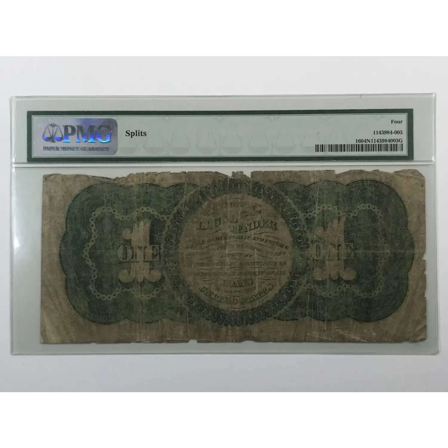 1862 $1 Legal Tender Note FR#16 - PMG G/Good 4 Net (splits)