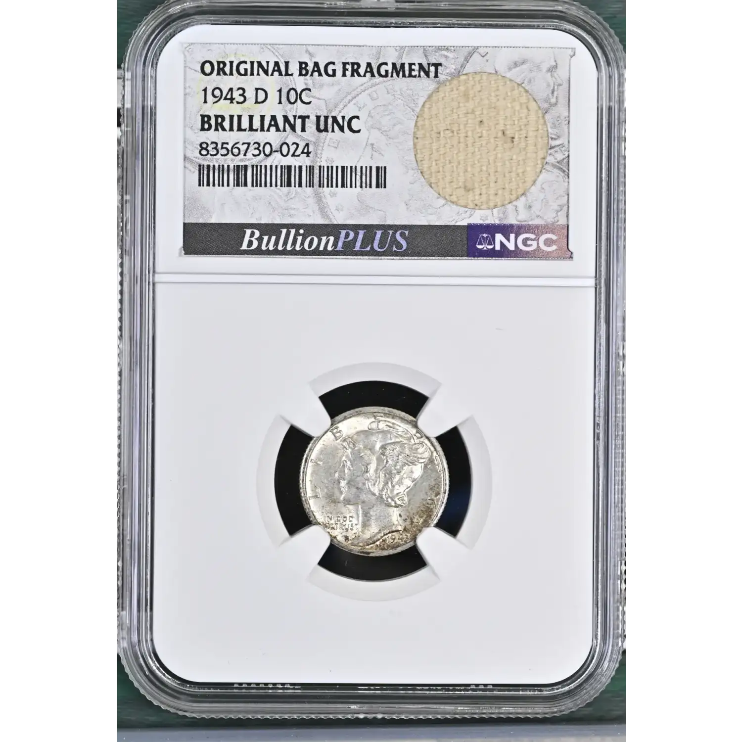 1943-D Mercury Dime NGC Uncirculated Original Bag Fragment