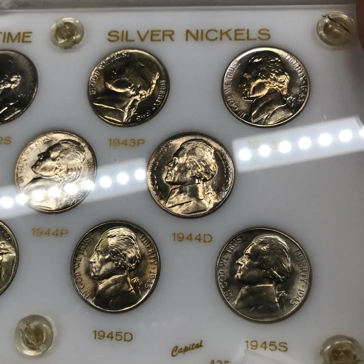 1942-1945 PDS World War II Silver Jefferson Nickel 11-Coin Set in Capital Plastics Holder 435 W - BU/Uncirculated - nice toning