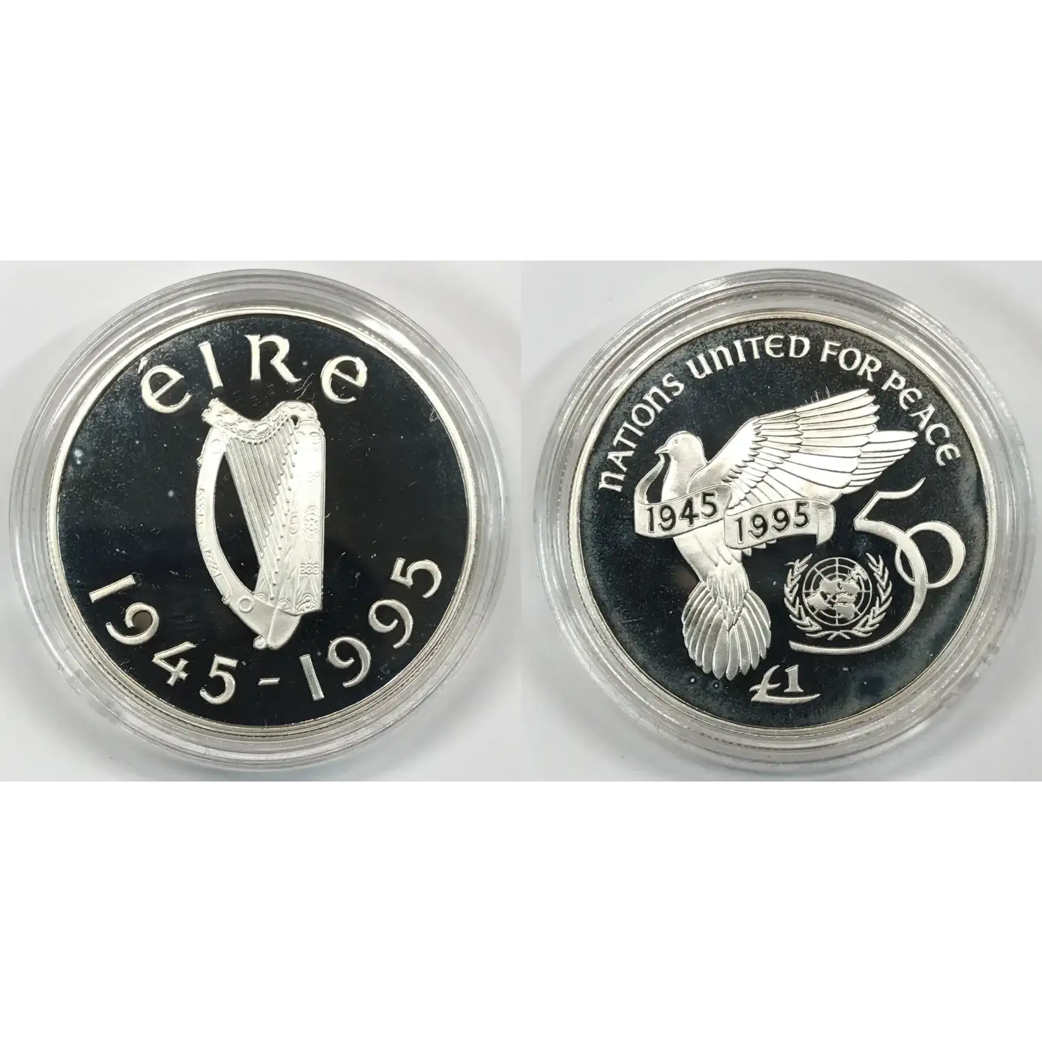 1945-1995 Proof IRELAND REPUBLIC Sterling Silver PUNT (Pound) - United Nation 50th Anniversary - EIRE - KM#30