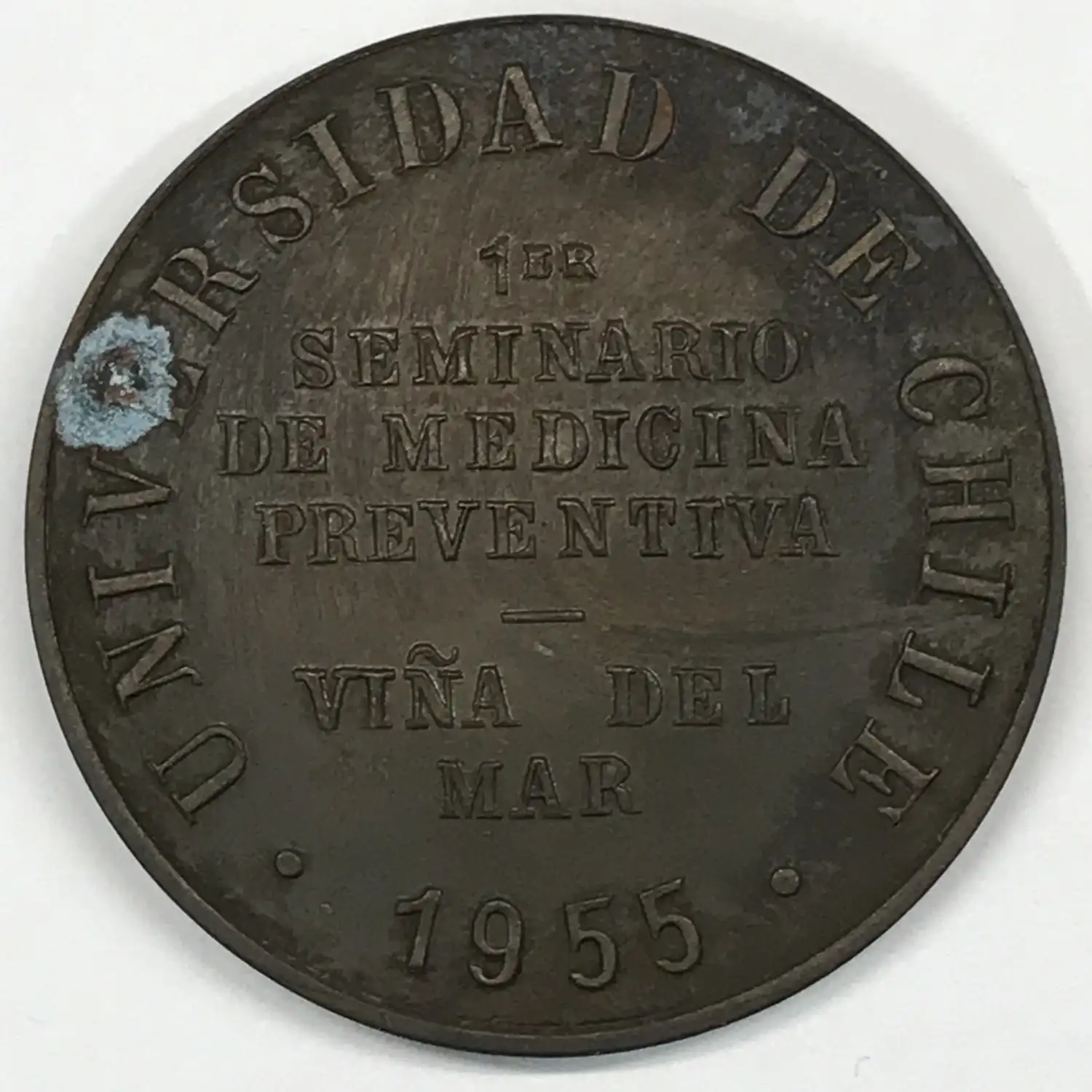 1955-So Medal corrosion spot Andres Bello Preventive Medicine Bronze Medal Santiago Mint Chile