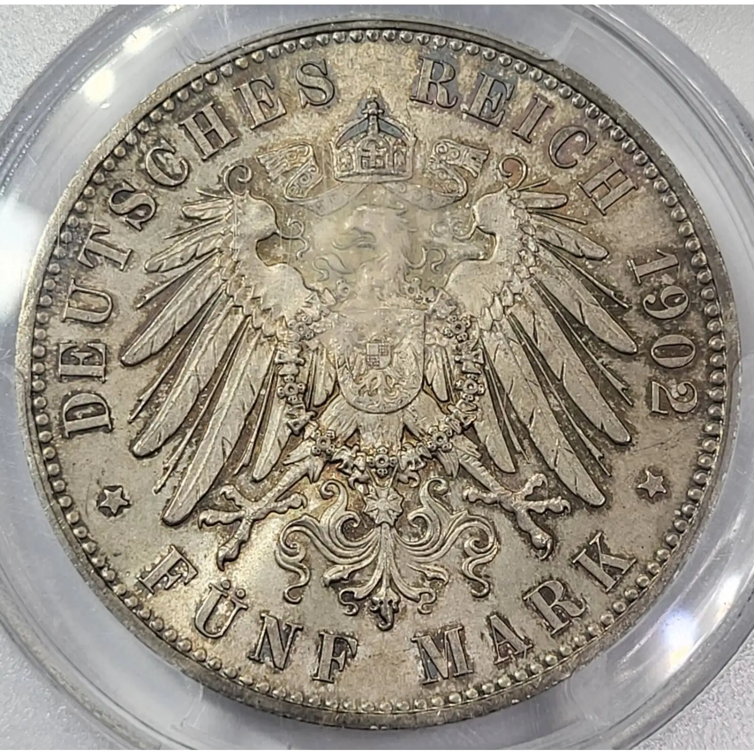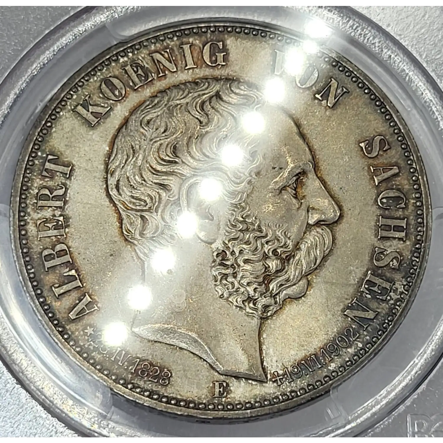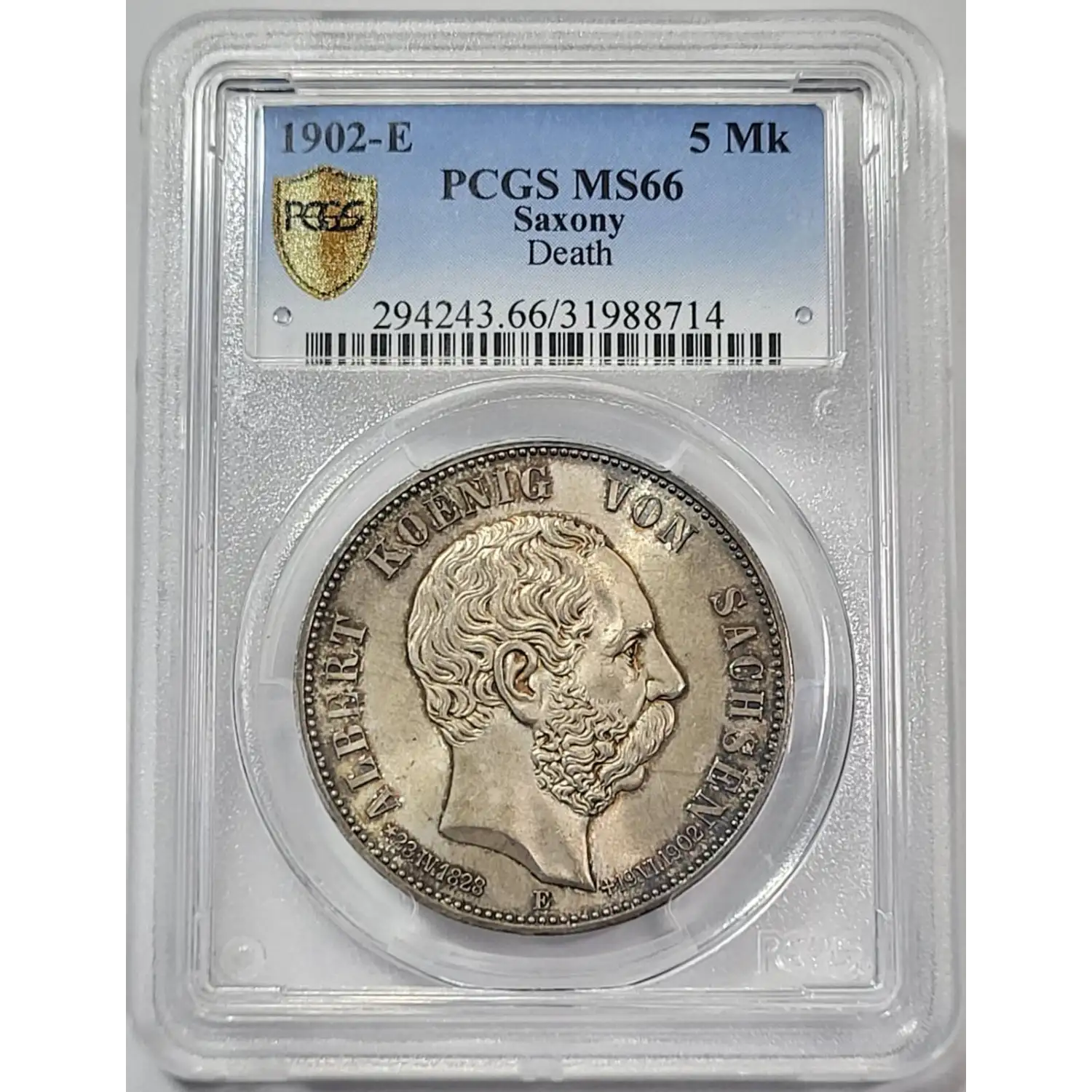 1902-E GERMAN STATES Silver 5 MARK PCGS MS-66 Death Saxony