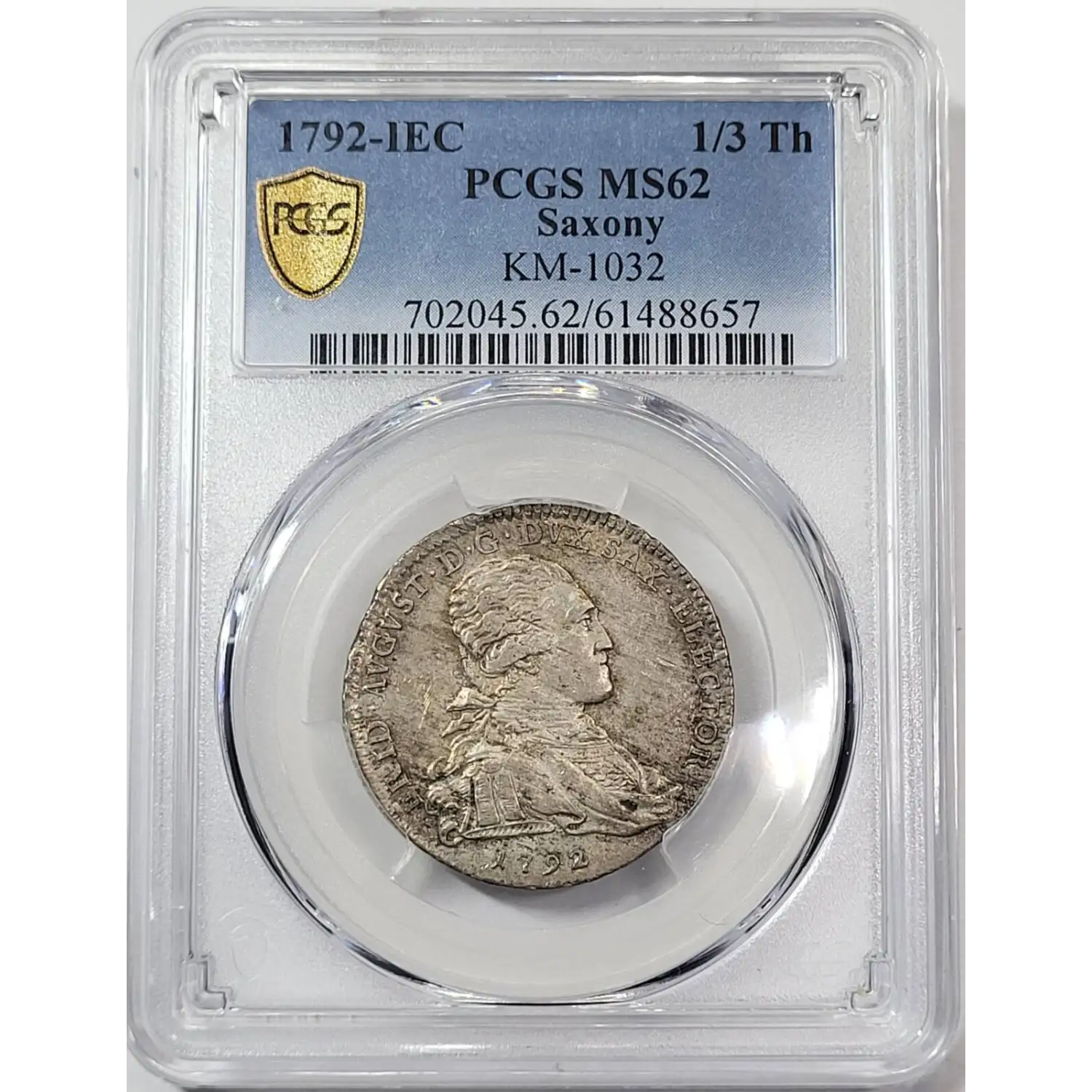 1792-IEC GERMAN STATES Silver 1/3 THALER (1/2 Gulden) PCGS MS-62 Saxony