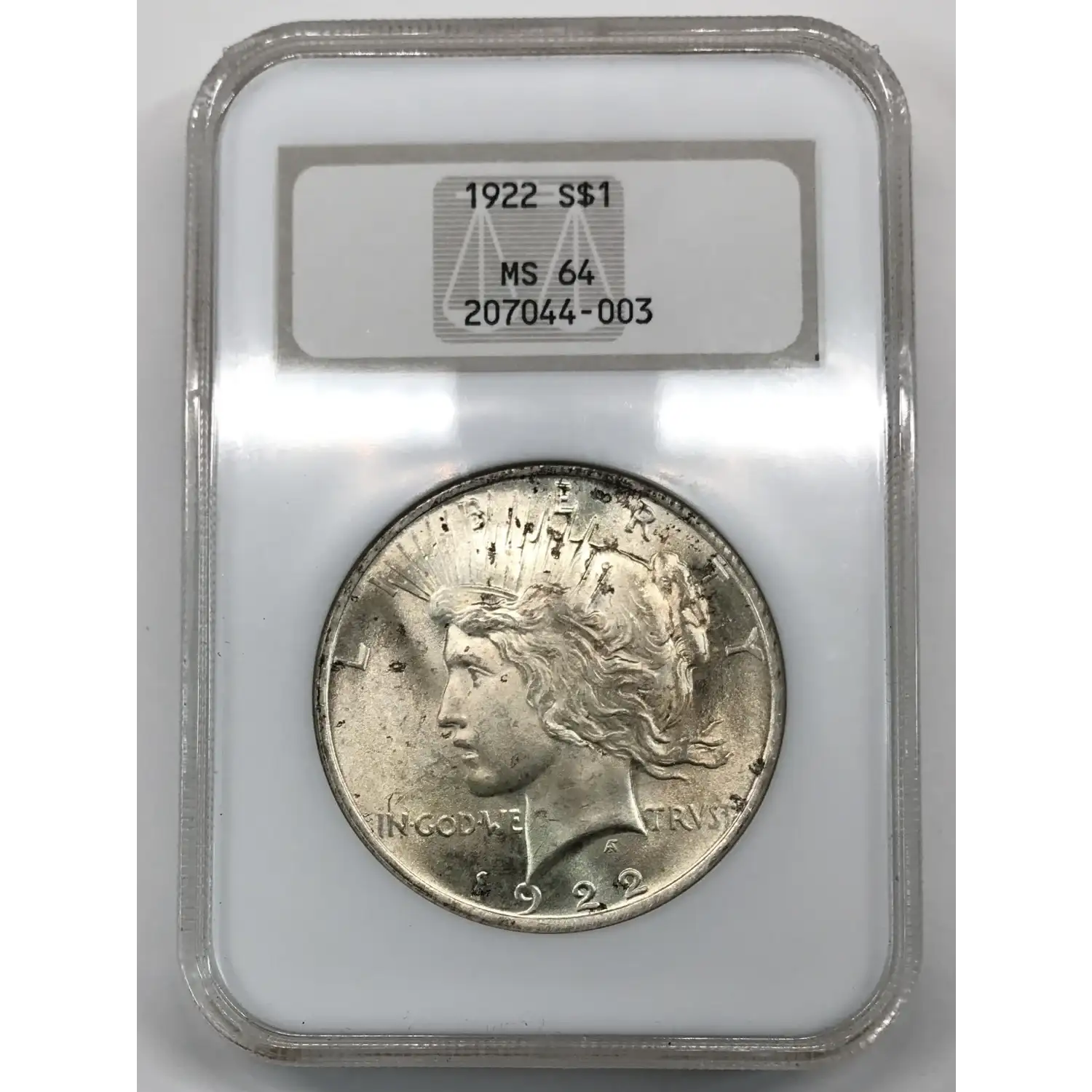 1922 P Peace Silver Dollar NGC MS-64 - Old Fatty Holder