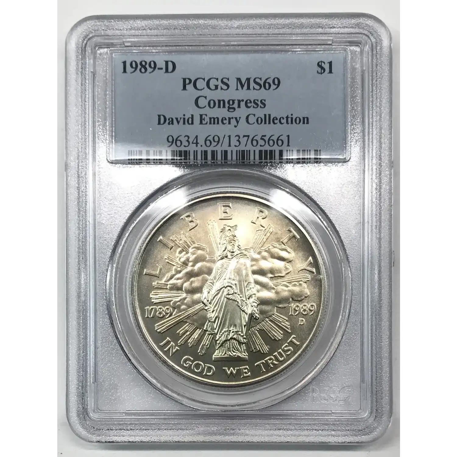 1989 D Congress Bicentennial Commemorative Silver Dollar PCGS MS-69 - David Emery Collection