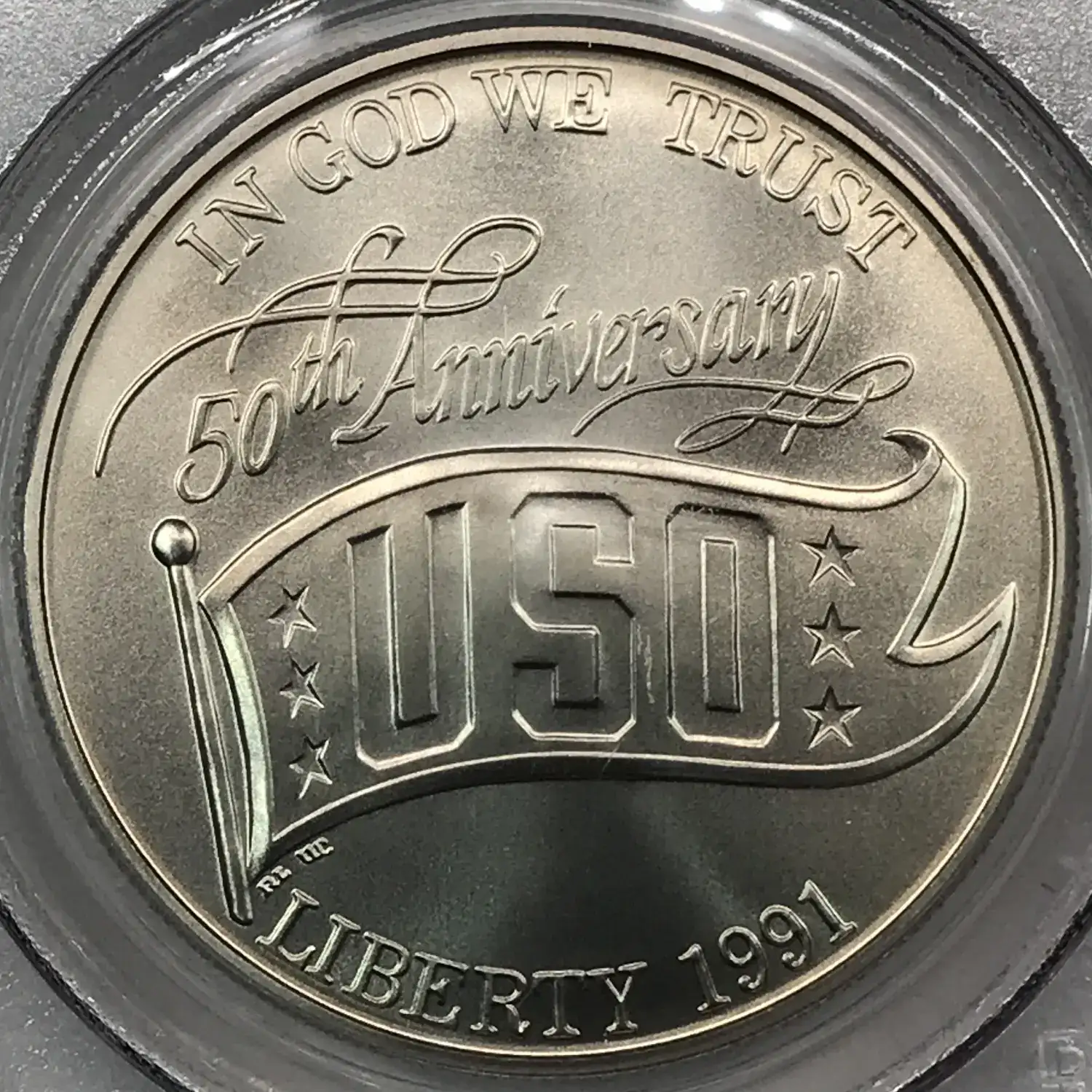 1991-D USO 50th Anniversary Commemorative Silver Dollar PCGS MS-70