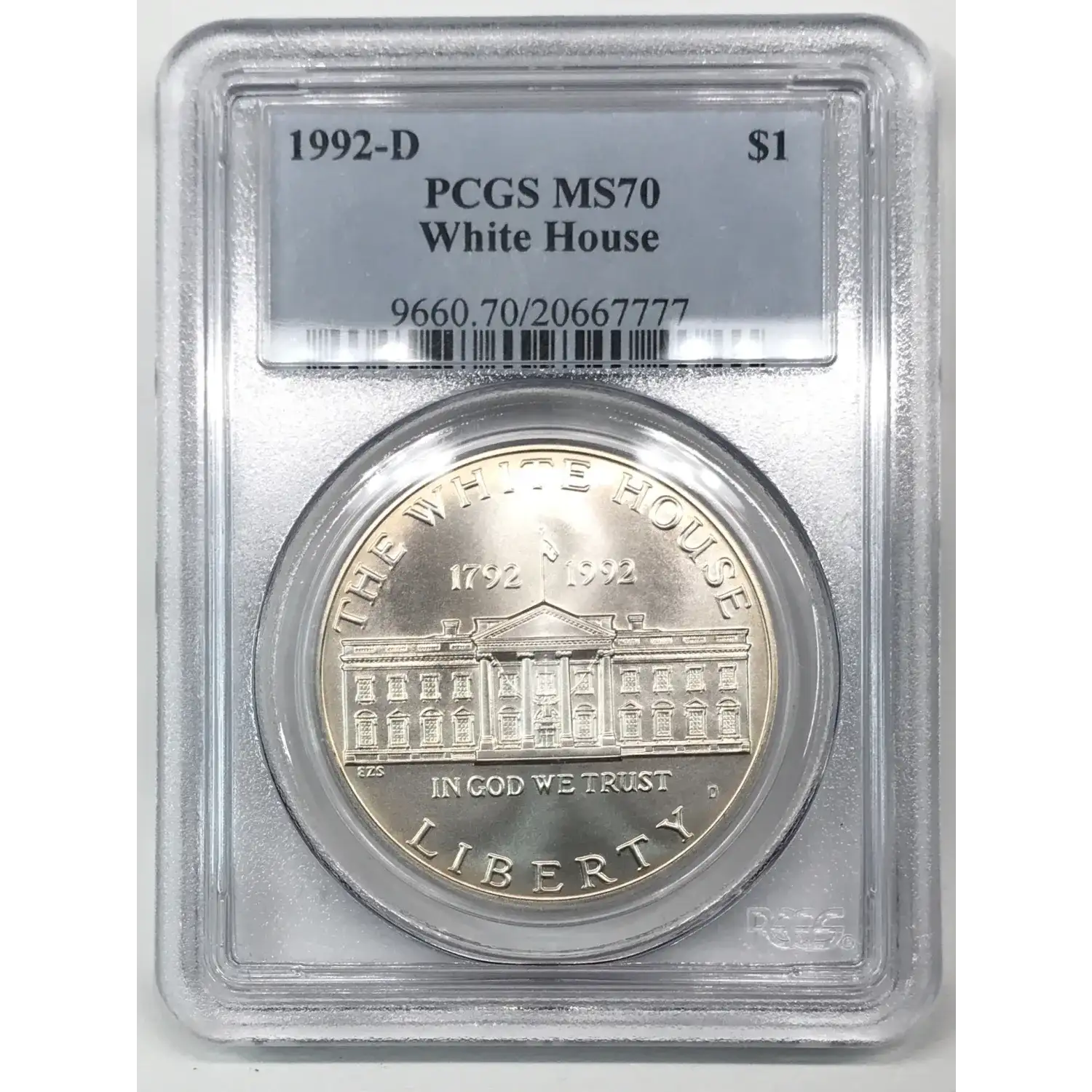 1992 D White House 200th Anniversary Commemorative Silver Dollar PCGS MS-70