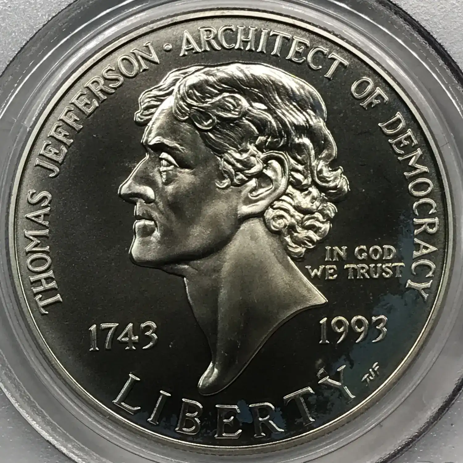 1993 Thomas Jefferson 250th Anniversary Commemorative Silver Dollar PCGS MS-70
