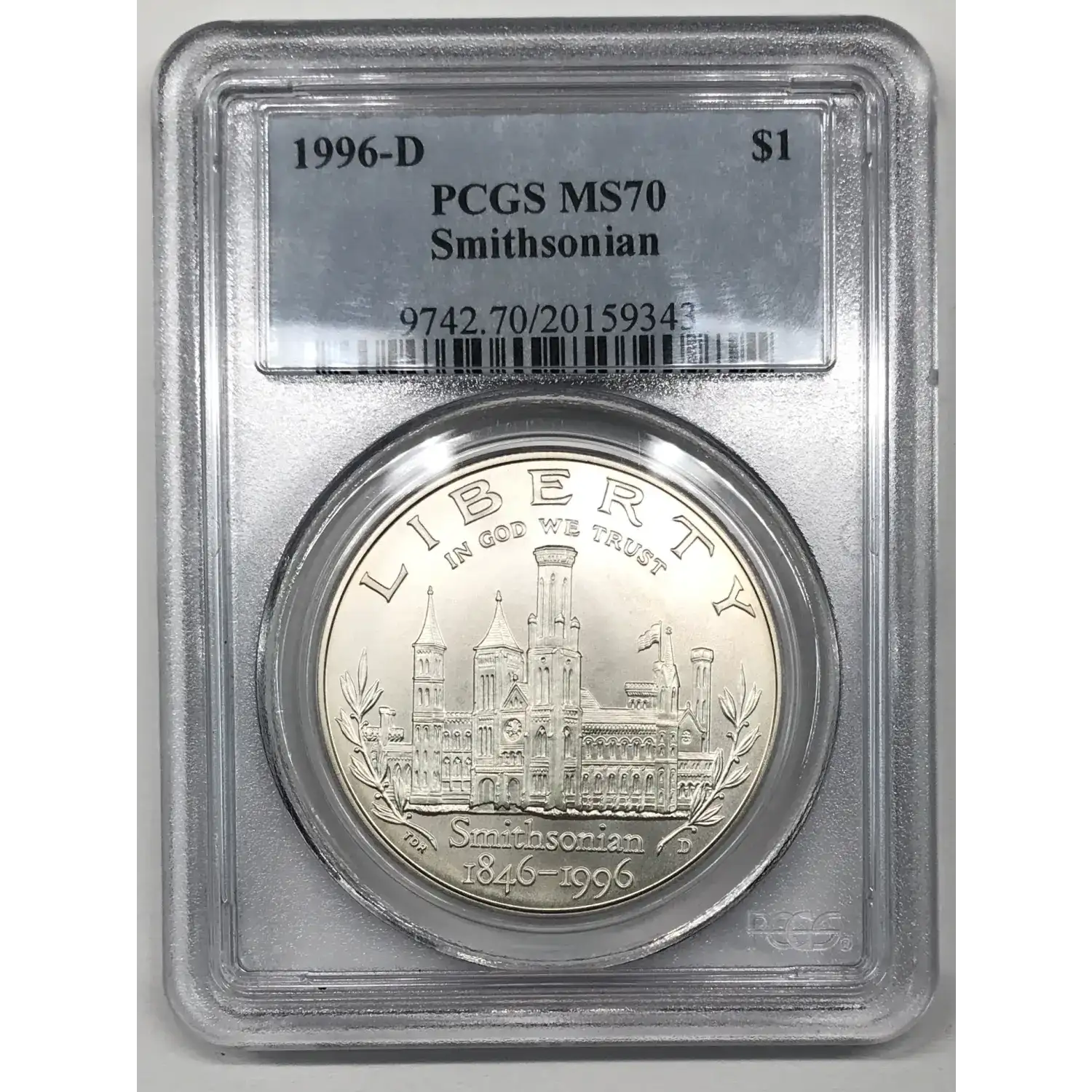1996-D Smithsonian 150th Anniversary Commemorative Silver Dollar PCGS MS-70