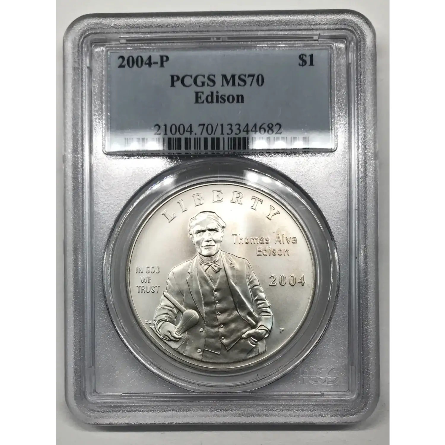 2004 P Thomas Alva Edison Commemorative Silver Dollar PCGS MS-70 - minor chipping on back of slab (top lip edge)