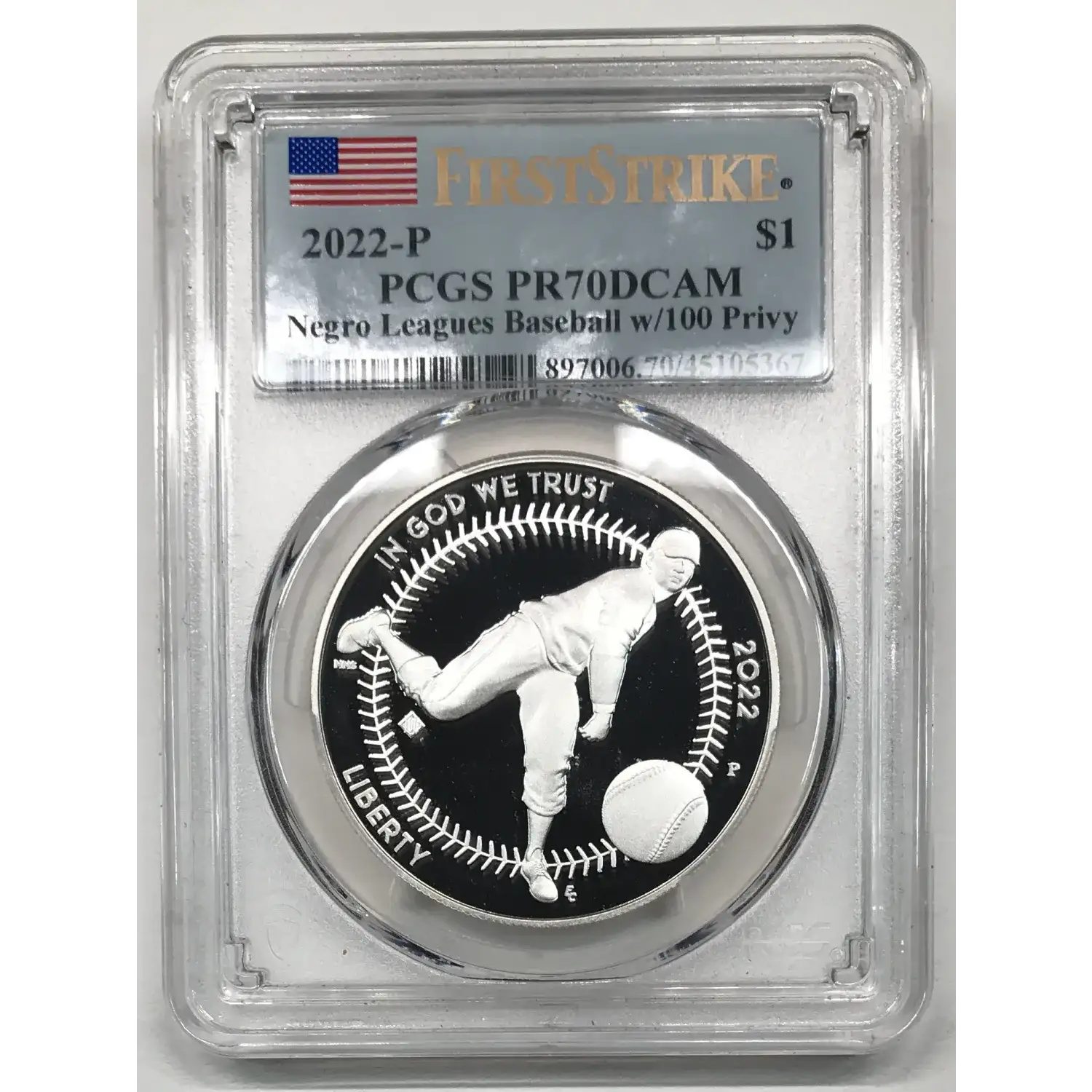 2022 Negro Leagues Baseball Commemorative Silver Dollar PCGS PR-70 DCAM w/100 Privy First Strike