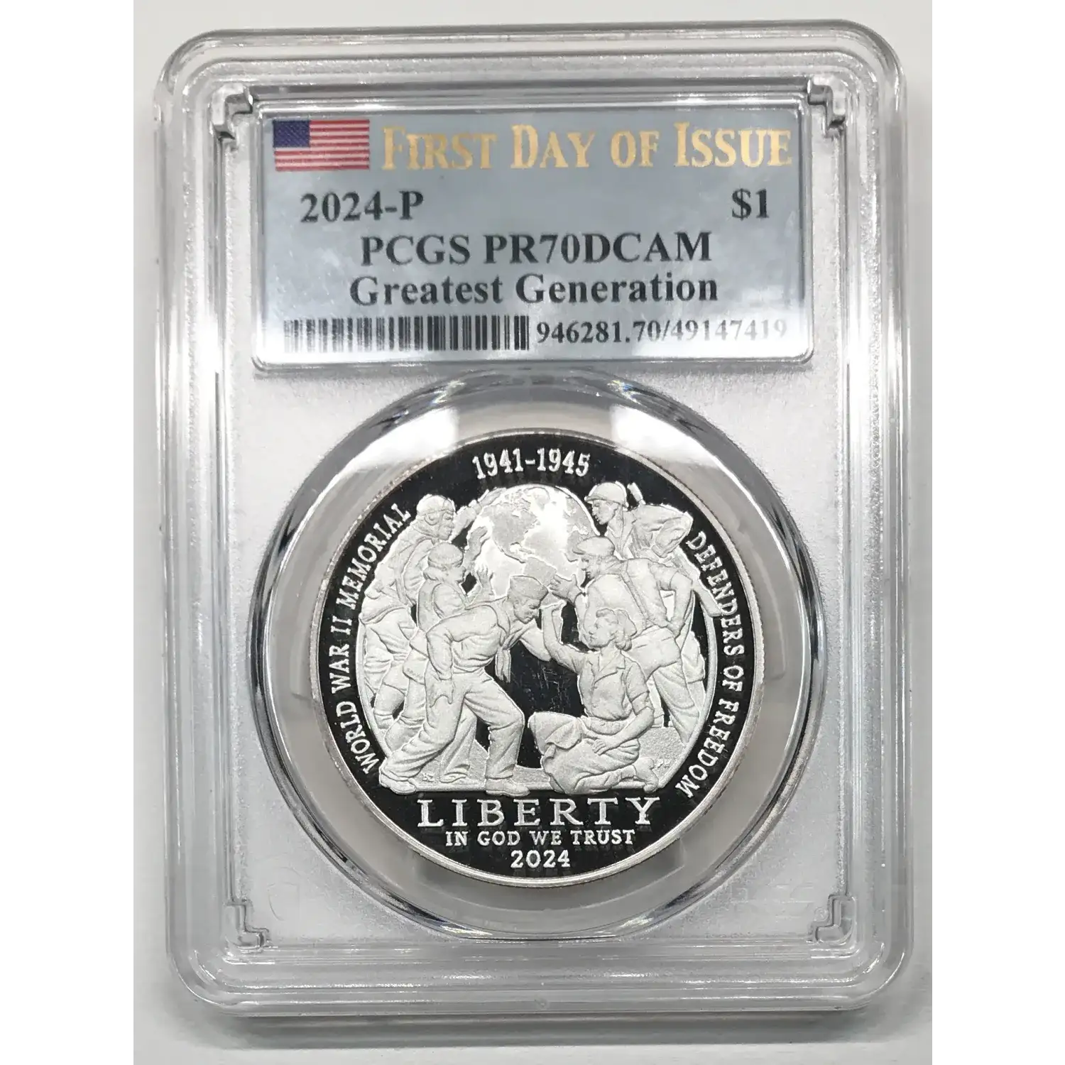 2024 P Proof Greatest Generation Commemorative Silver Dollar PCGS PR-70 DCAM First Day of Issue (FDOI/FDI)