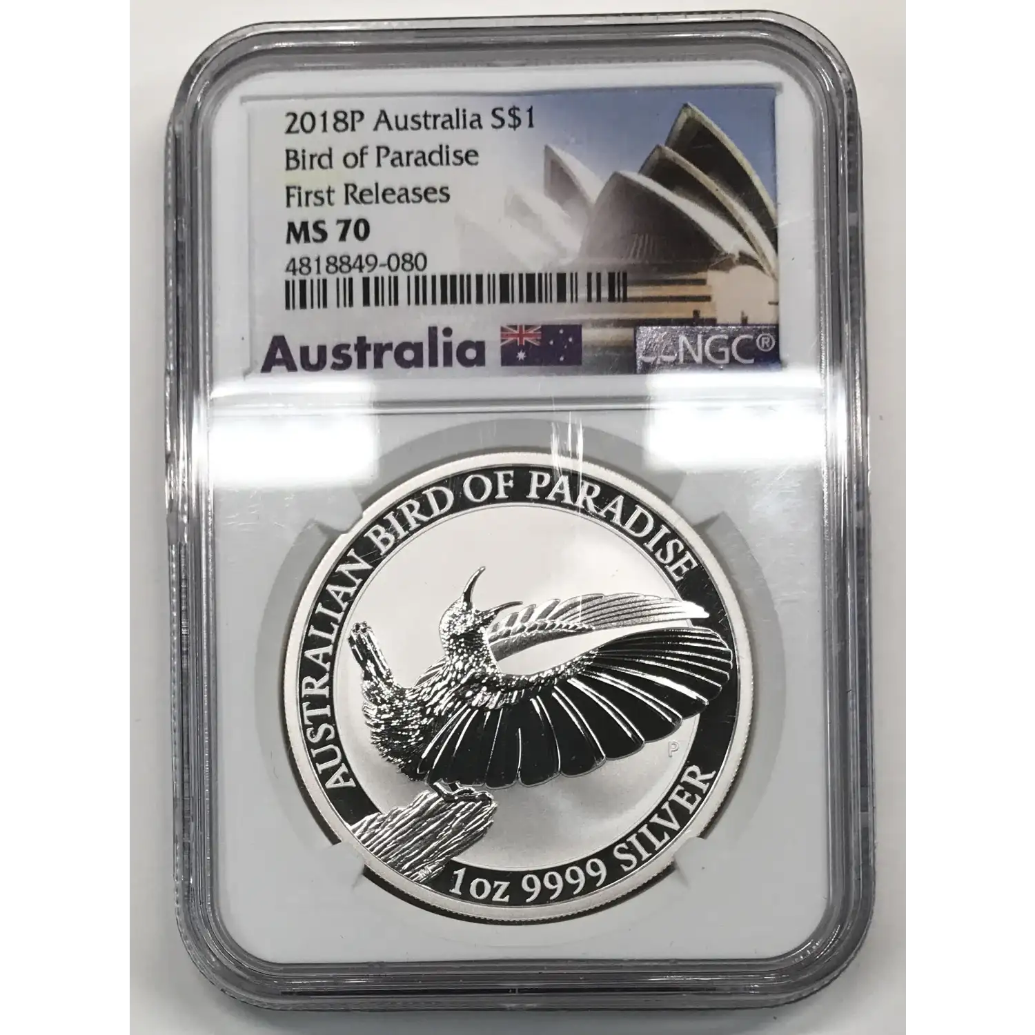 2018 1 oz Silver NGC MS-70 Bird of Paradise Australia $1 First Releases