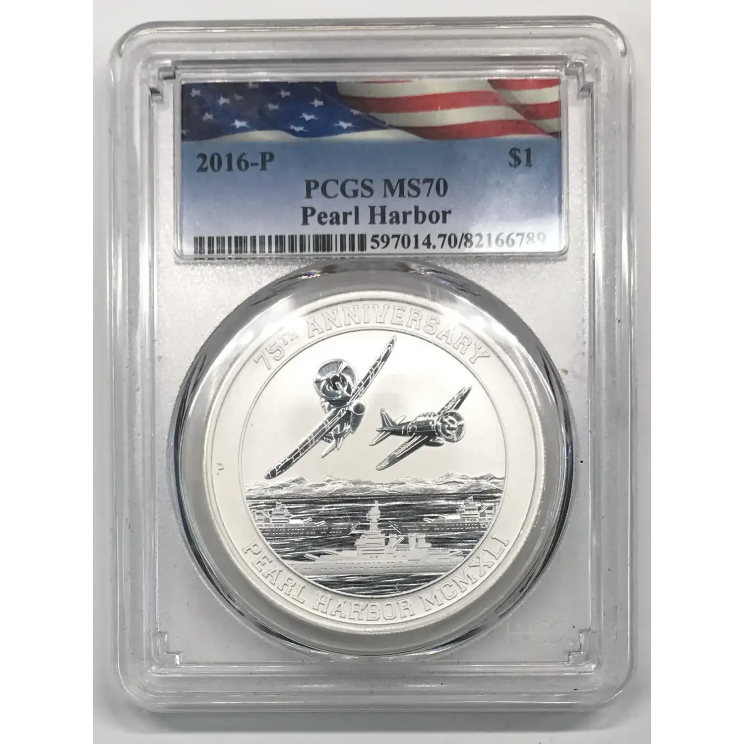 2016 1 oz Silver PCGS MS-70 Pearl Harbor Tuvalu