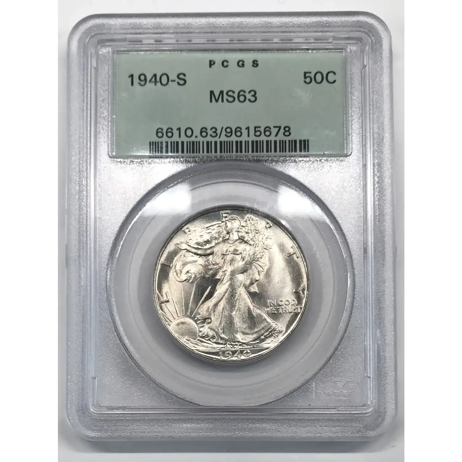 1940 S Walking Liberty Half Dollar PCGS MS-63 - Gen 3.1 Old Green Holder (OGH)