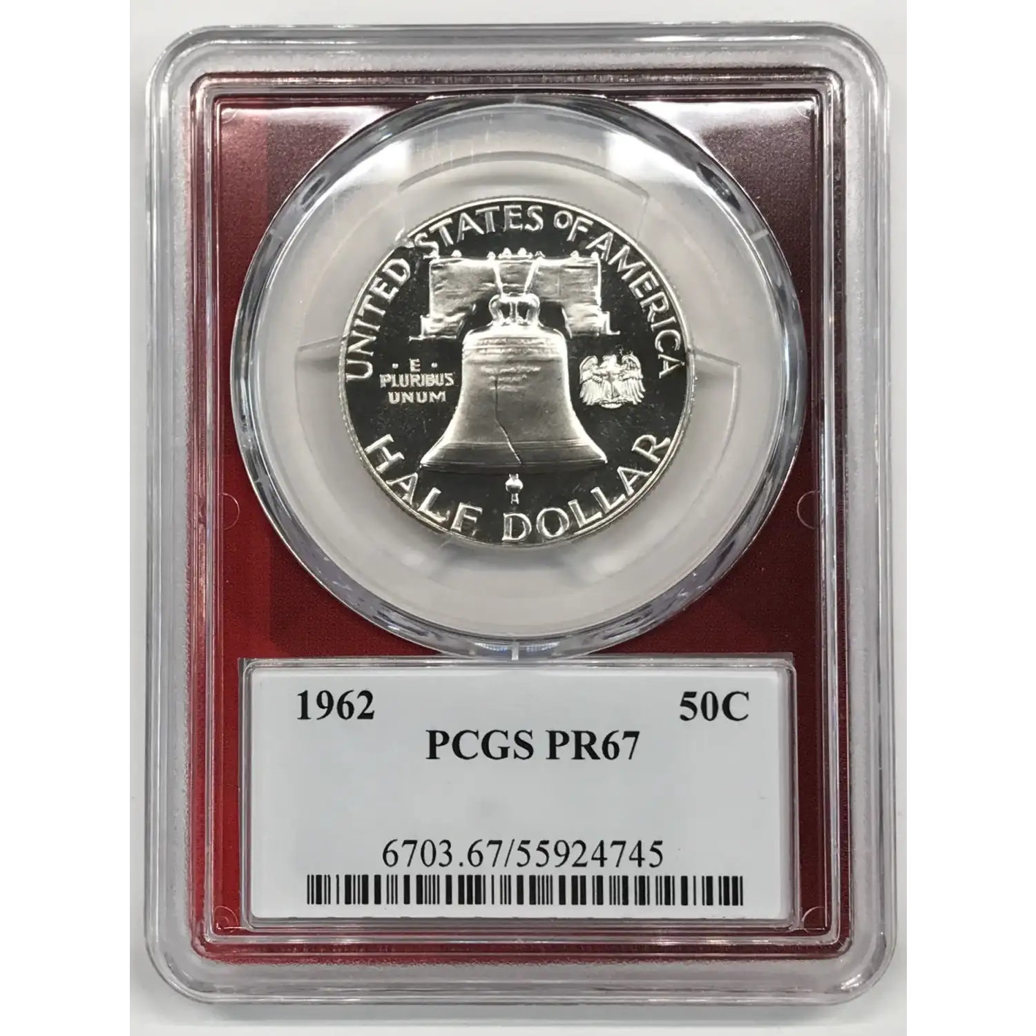 1962 Proof Franklin Half Dollar PCGS PR-67 - EDC Plug Label & Red Core - some plastic chipping (observe side, right side of bottom edge)