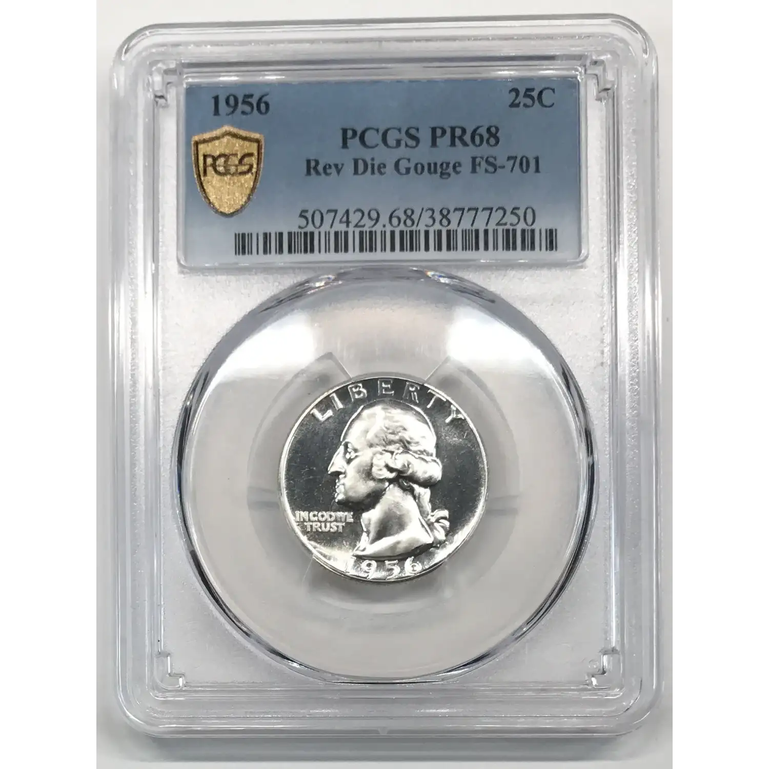 1956 P Silver Washington Quarter PCGS PR-68 - FS-701 Reverse Die Gouge - PCGS Pop 16/4
