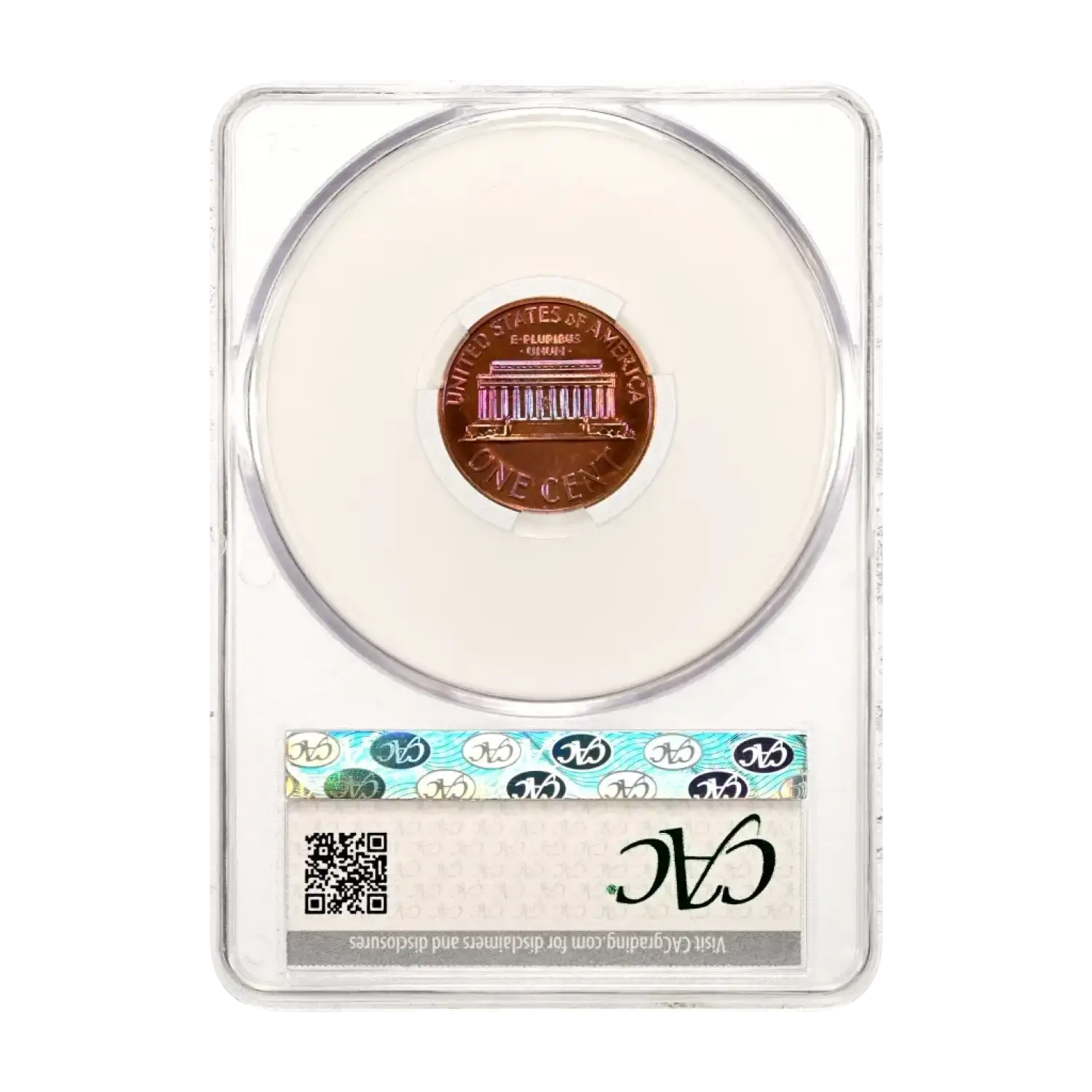 1961 Proof Lincoln Memorial Cent CAC Grading (CACG) PR 66 BN - *Blue/Purple Rainbow Toning*