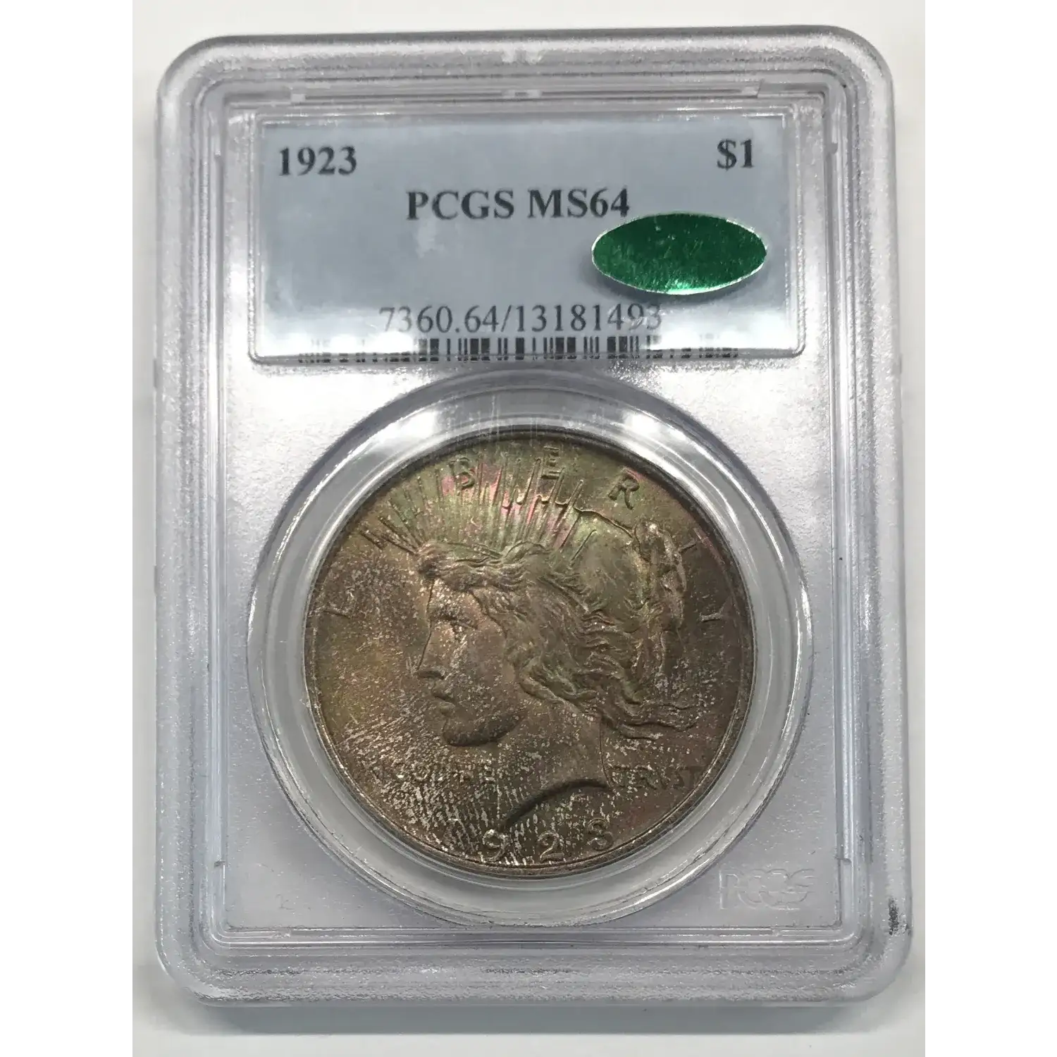 1923 P Peace Silver Dollar PCGS MS-64 CAC *Green/Red Rainbow Toning*