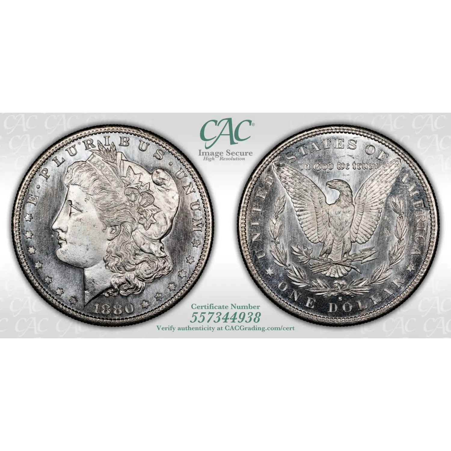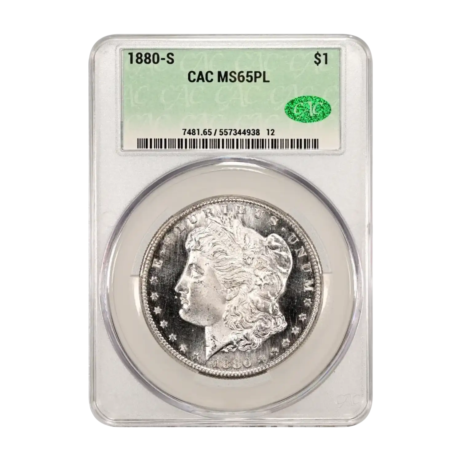 1880-S Morgan Silver Dollar CAC Grading (CACG) MS 65 PL - nice attractive coin