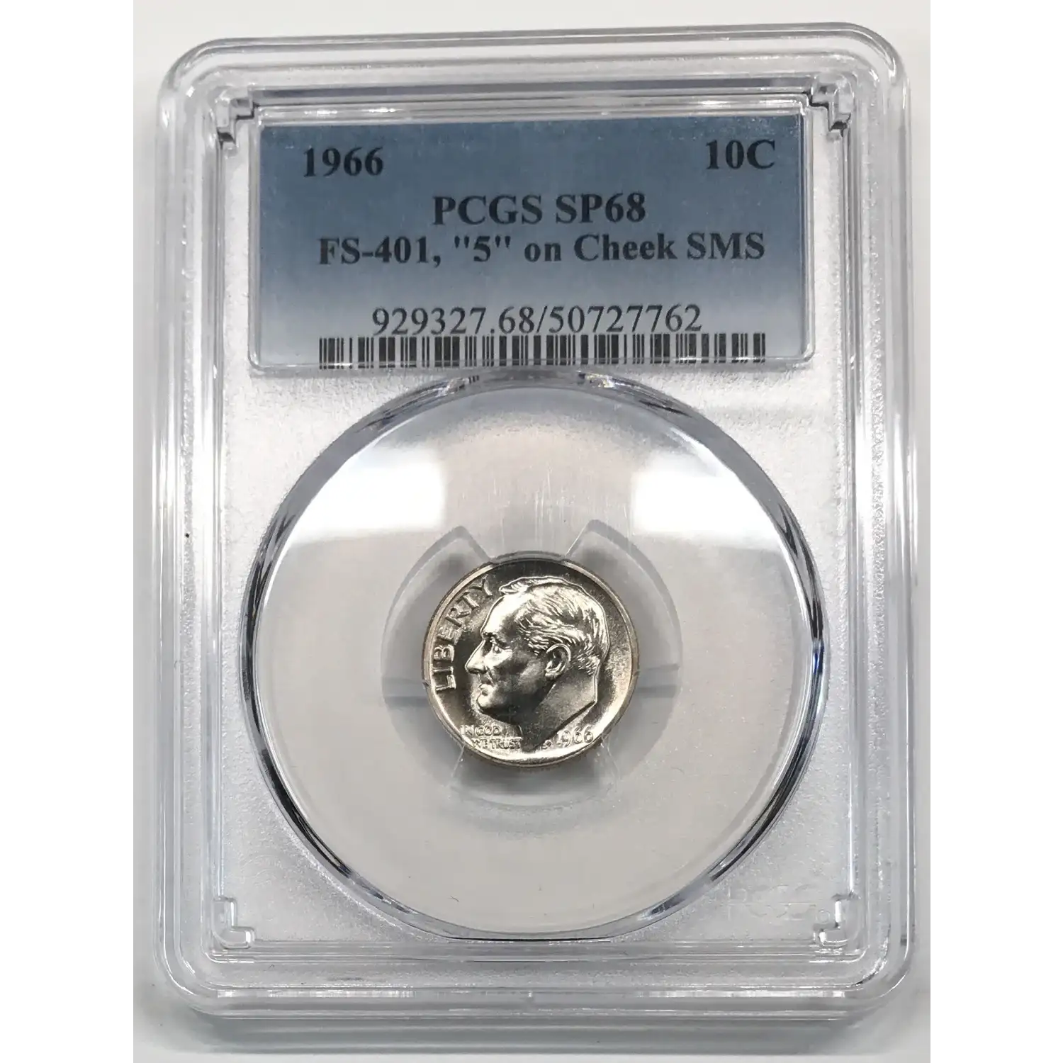 1966 SMS Roosevelt Dime PCGS SP-68 - FS-401, "5" on Cheek - TOP POP 7/0