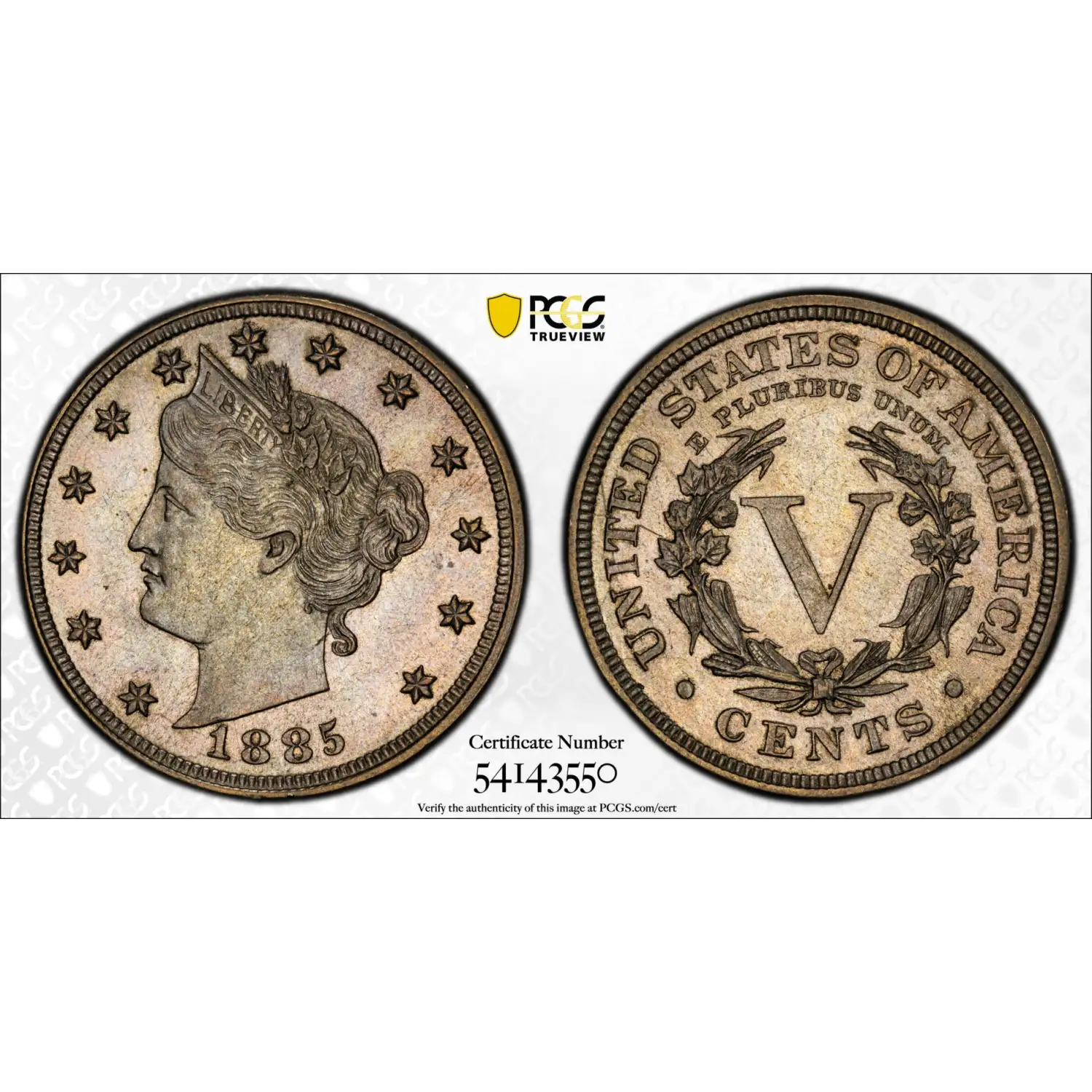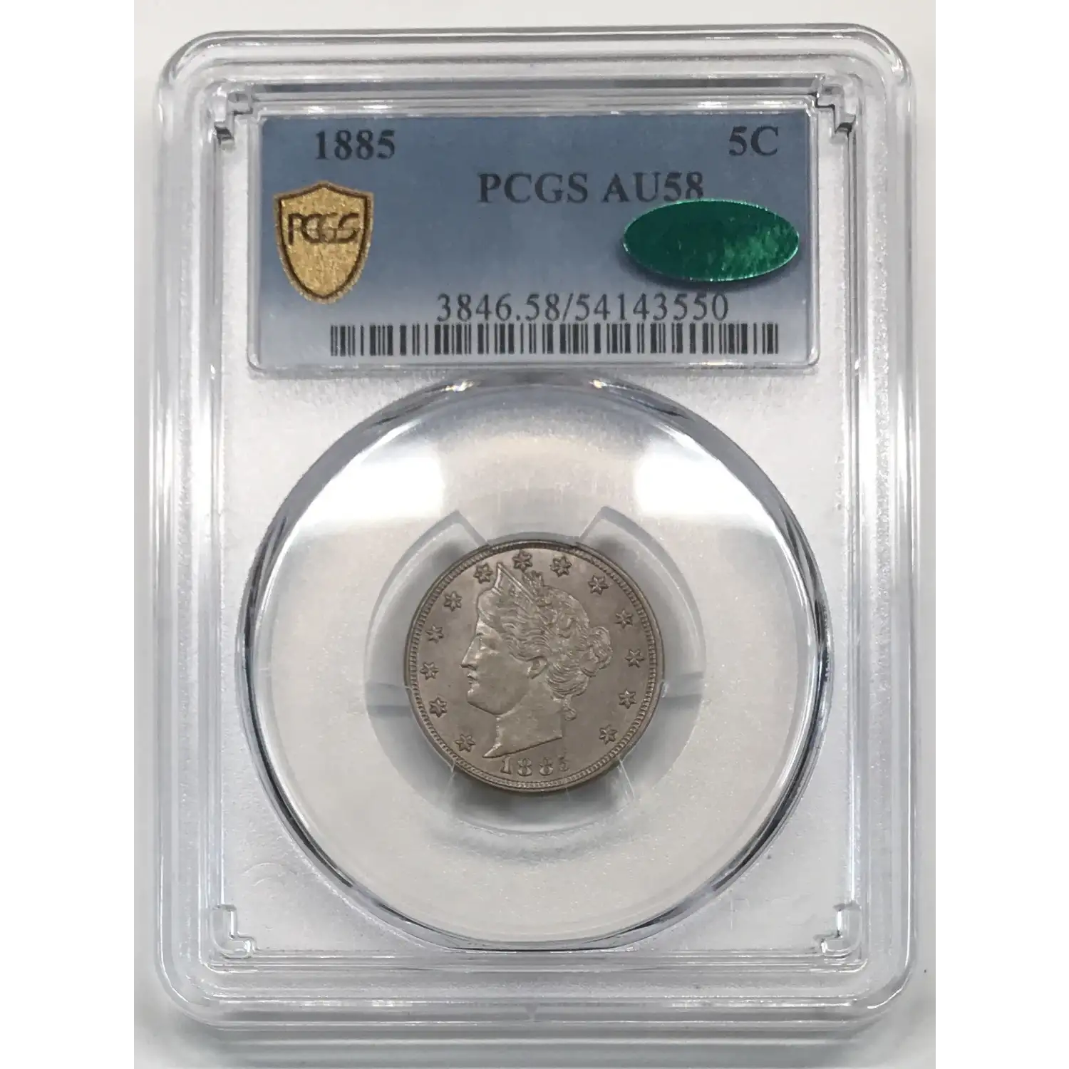 1885 Liberty Head V Nickel PCGS AU-58 CAC