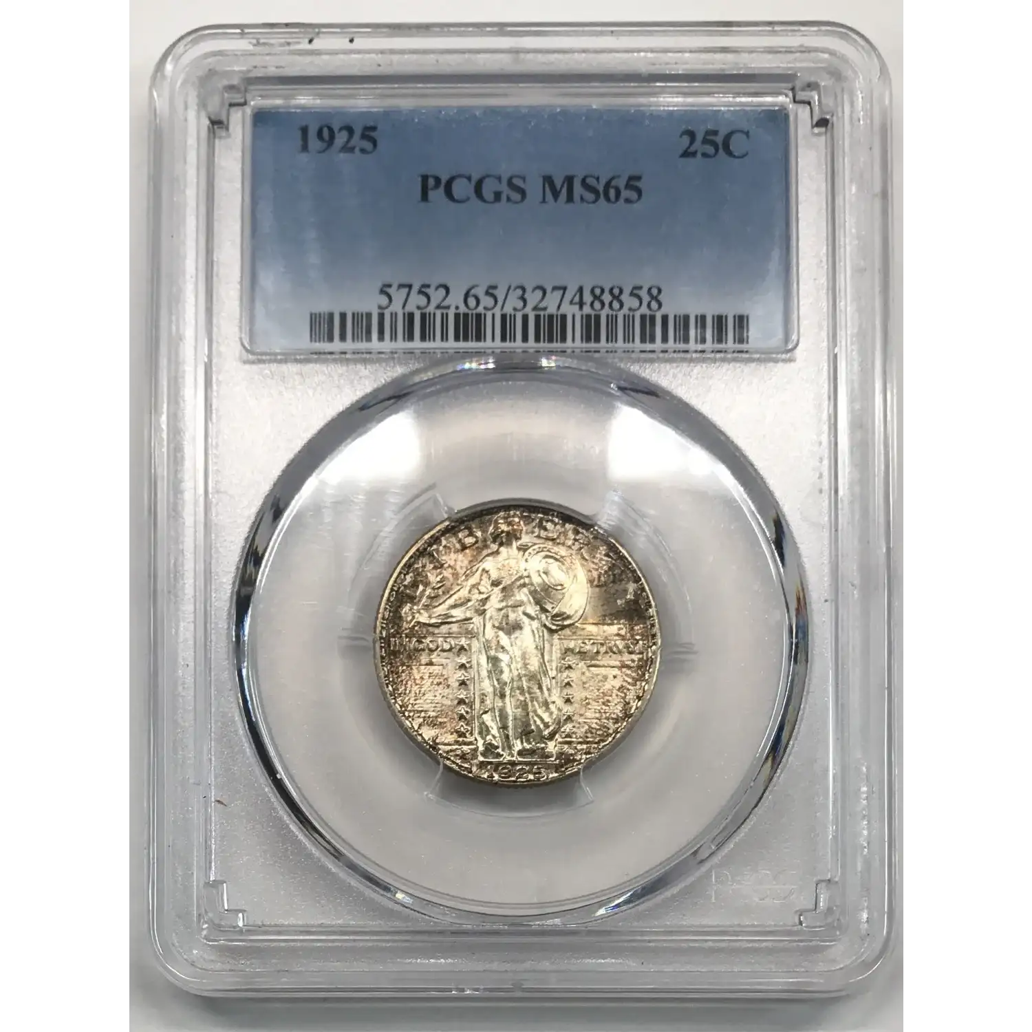1925 P Standing Liberty Quarter PCGS MS-65 - nice tone - minor chipping on back of slab