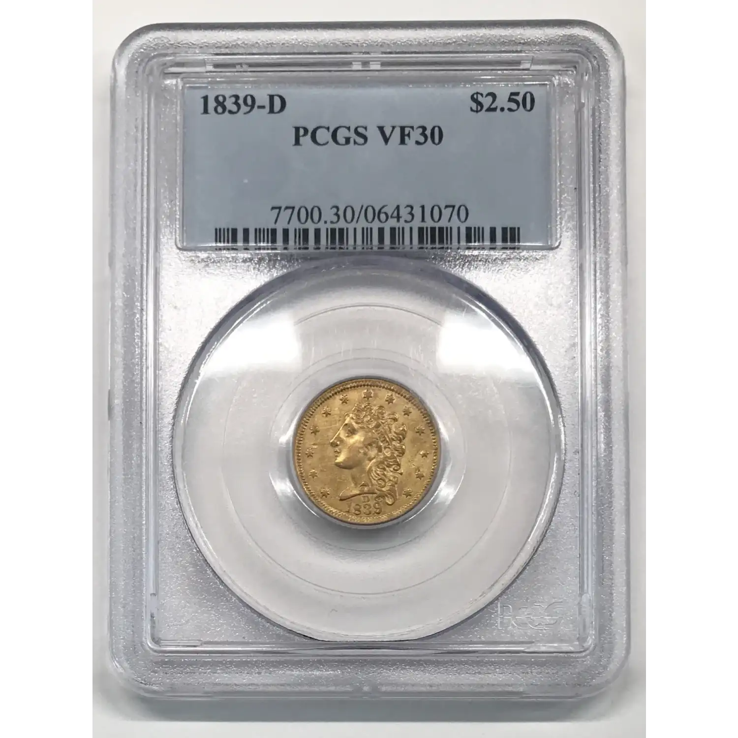 1839 D $2.50 Gold Classic Head Quarter Eagle PCGS VF-30 - Dahlonega Mint