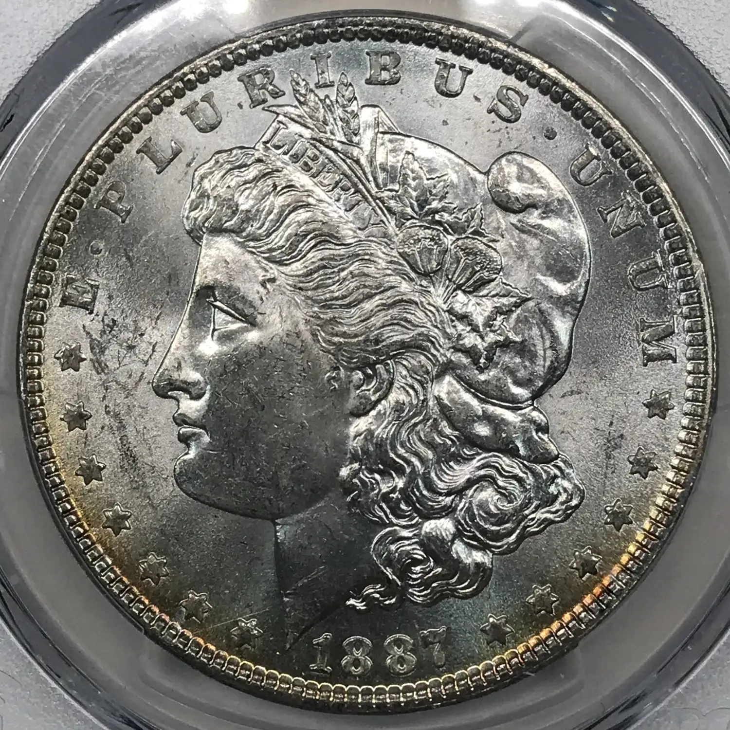 1887 P Morgan Silver Dollar PCGS MS-62 - Reverse Rim Rainbow Toning