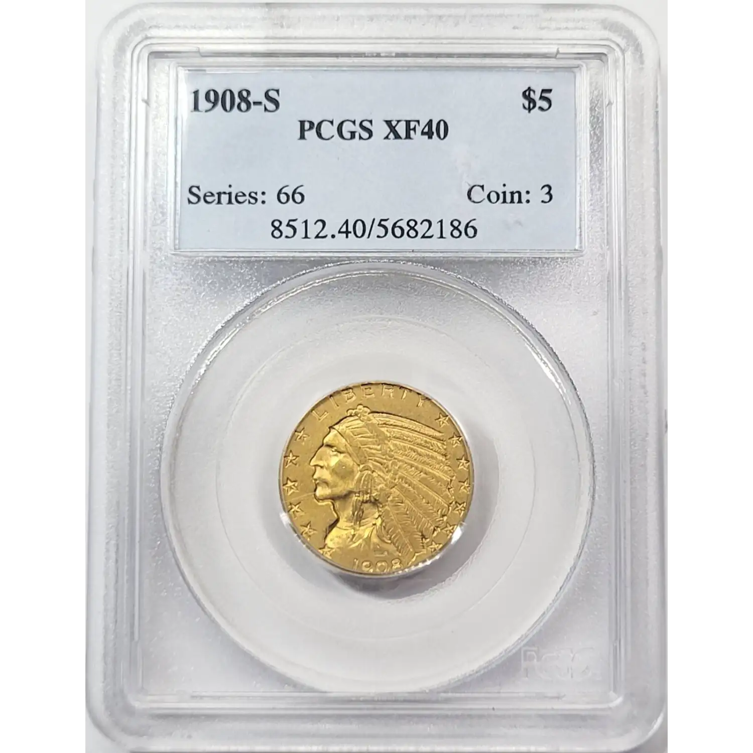 1908 S $5 Gold Indian Head Half Eagle PCGS XF-40