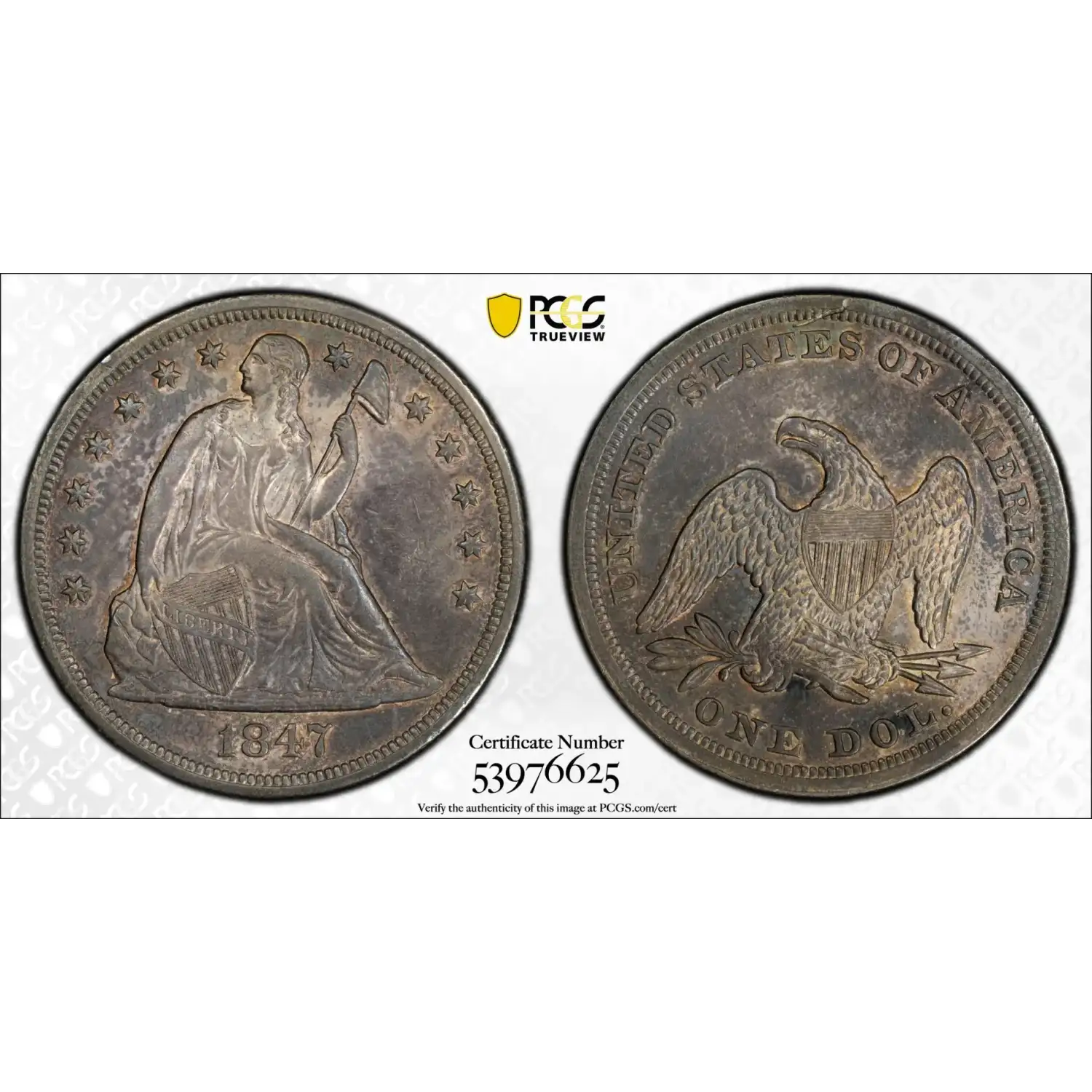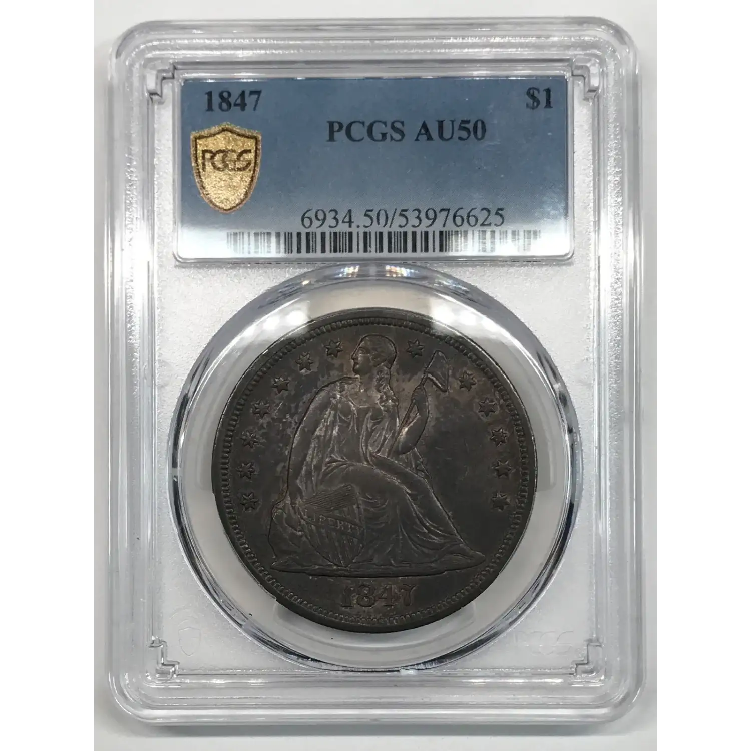1847 P Seated Liberty Silver Dollar PCGS AU50