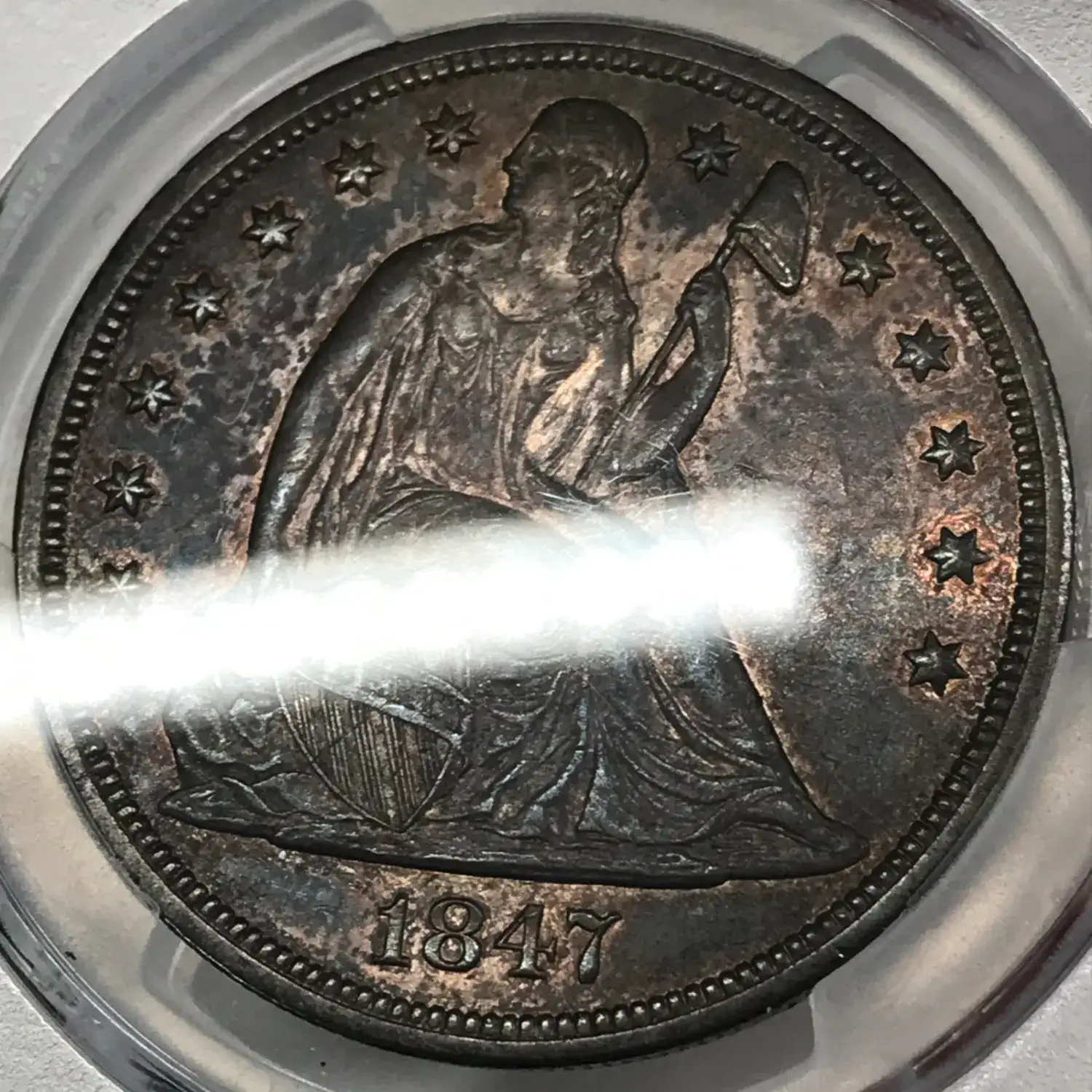 1847 Seated Liberty Silver Dollar PCGS AU-50 Reverse Struck Thru Mint Error