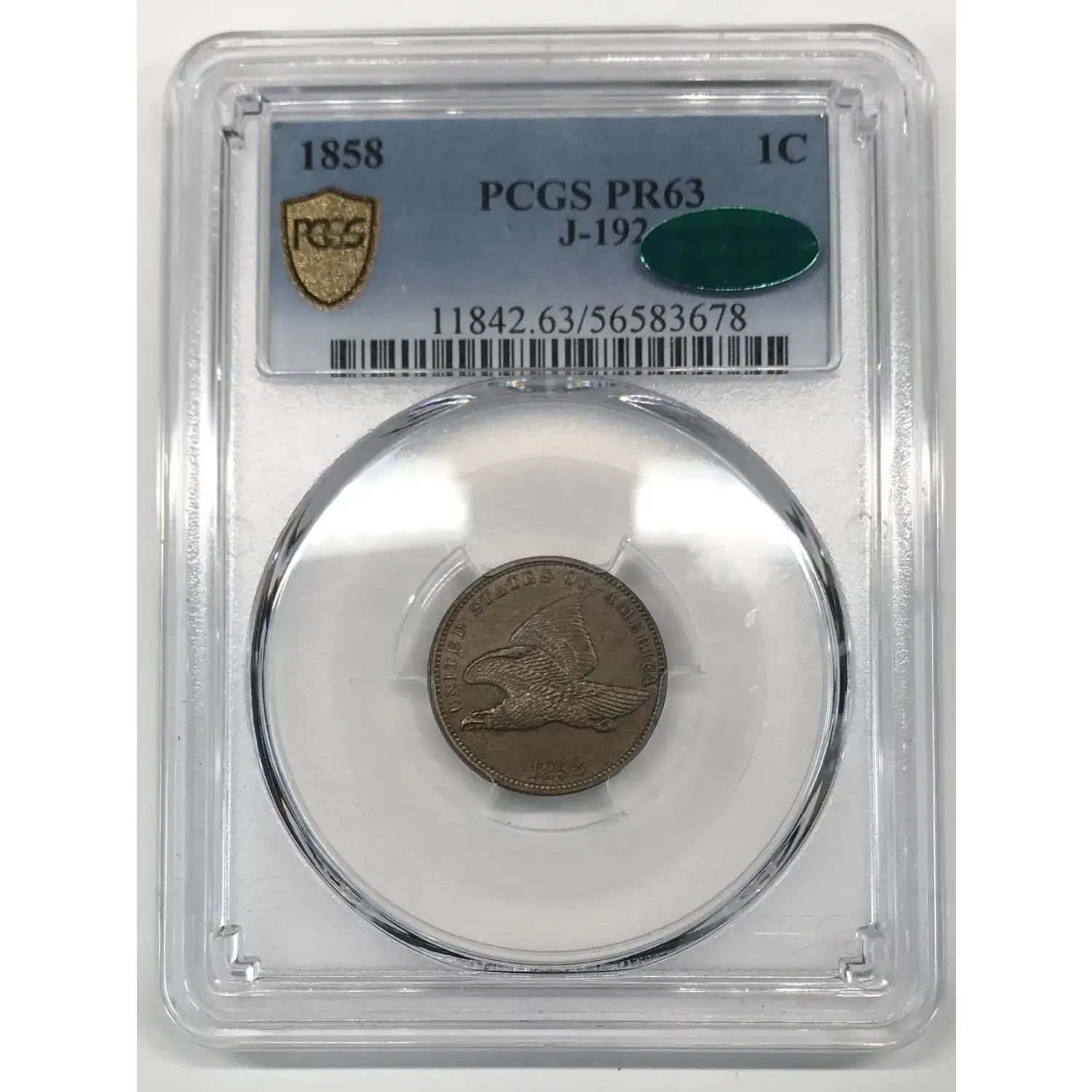 1858 Judd J-192 Pattern Flying Eagle Cent PCGS PR-63 CAC - Small Letters Obverse , Wide Wreath Reverse