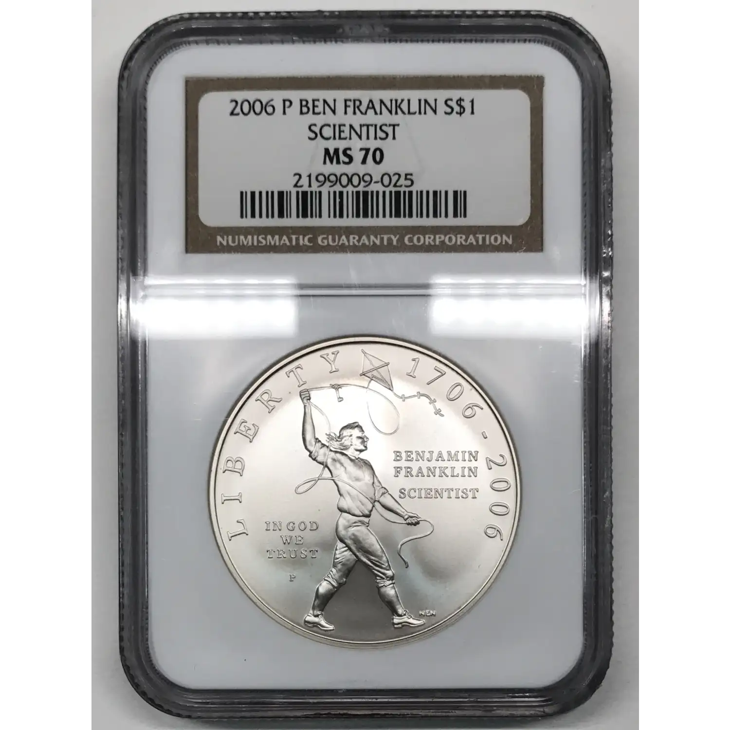 2006 P Benjamin Franklin Tercentenary Scientist Commemorative Silver Dollar NGC MS-70